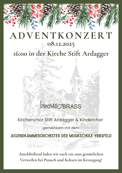 13. Dezember 2025 Adventkonzert ...eine besinnliche Einstimmung auf das nahende Weihnachtsfest. Wir freuen uns, wenn auch DU vorbeischaust. mehr: Adventkonzert