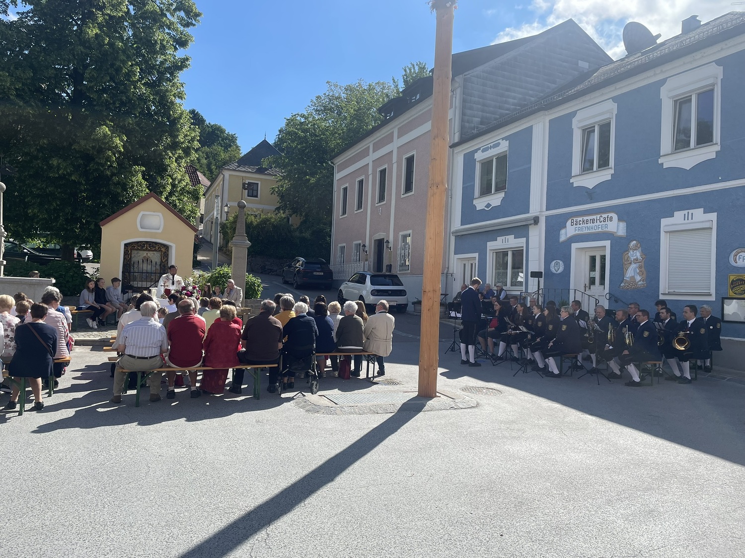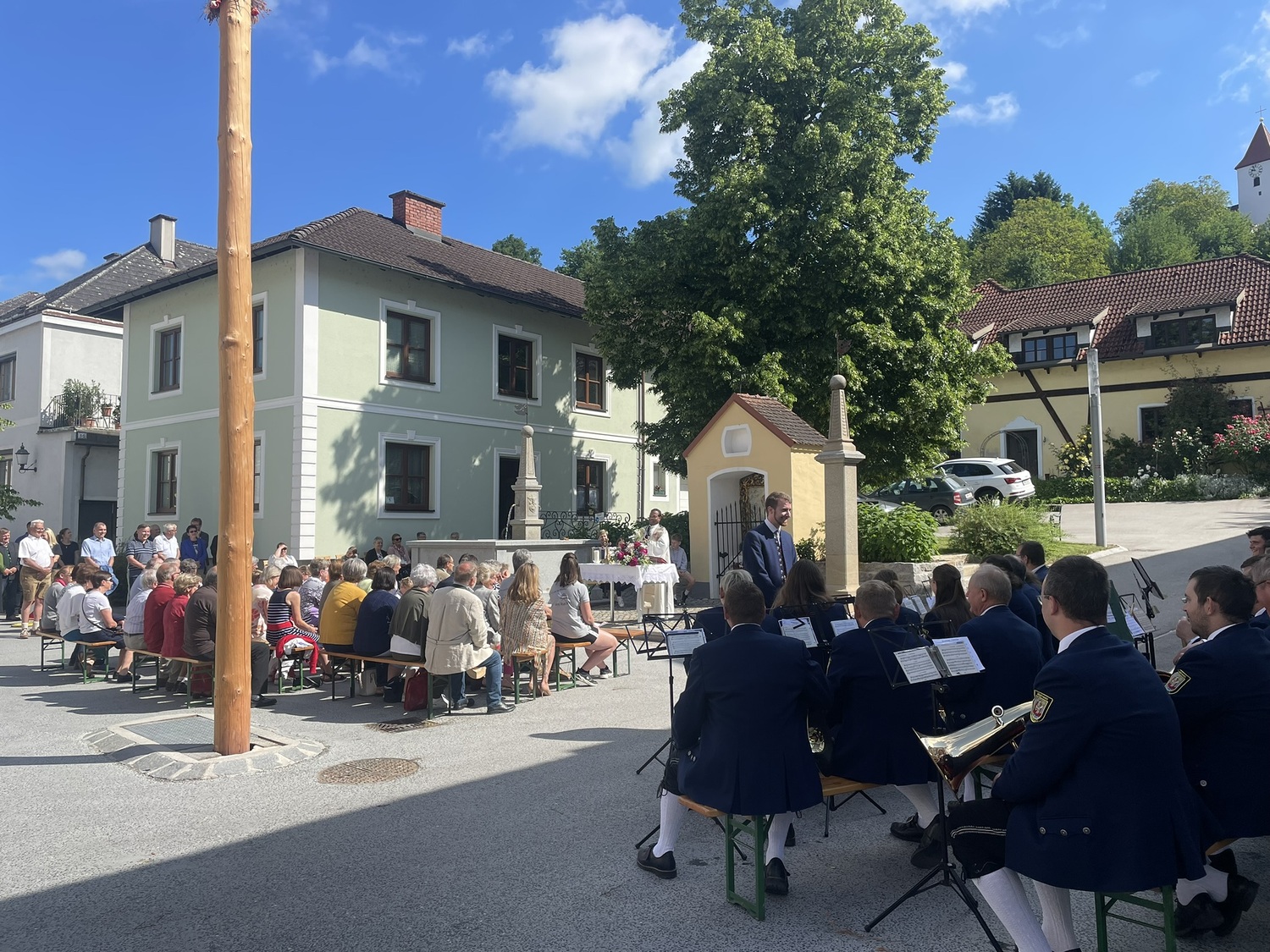 Jedes Jahr bei Schönwetter wird die Hl. Messe am Pfingstsonntag zum Tag der Blasmusik am Marktplatz gefeiert.