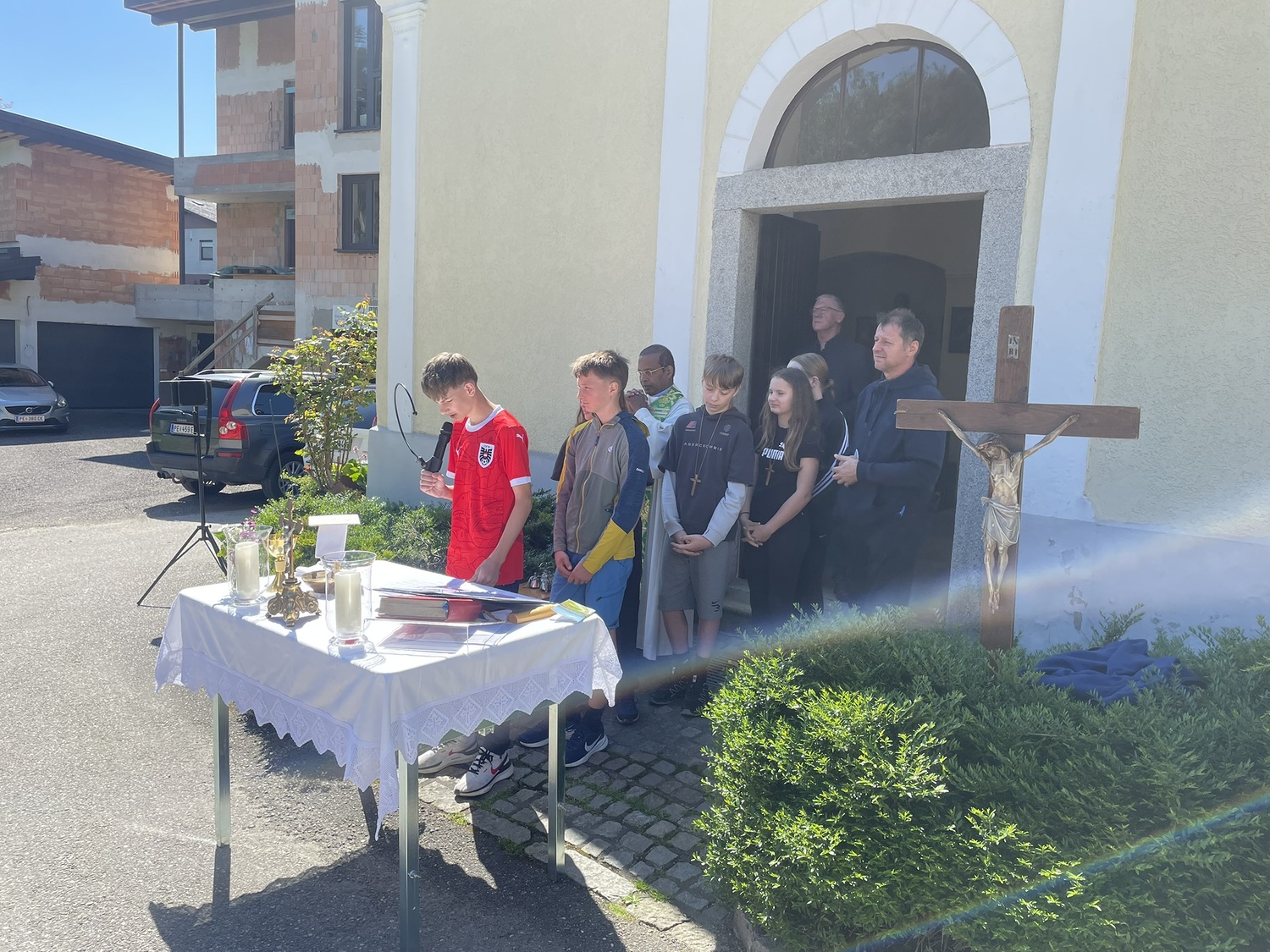 Bereits zum 113. Mal fand unsere traditionelle Wallfahrt zum Aigner Kreuz am Sonntag den 27. April statt. Eine große Pilgerschar machte sich gemeinsam von Ardagger Markt auf den Weg. Es waren auch Kinder und einige Firmkanditiaten dabei. Unterwegs wurde gemeinsam gebetet, gesungen und Texte und Litaneien gelesen. Auch einige Impulse passend zum Thema Glaube und Vertrauen regten zum Nachdenken an. Beim Aigner Kreuz wurde zum Abschluss mit Vikar Biju die Hl. Messe gefeiert. Die Gemeinschaft war spürbar und die Wallfahrt war erneut ein bewegendes Zeichen von gelebter Tradition.