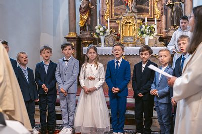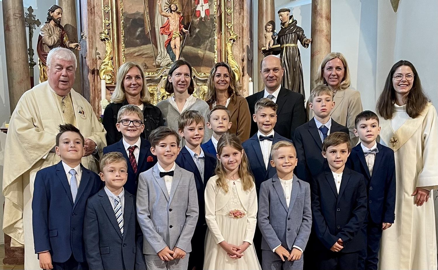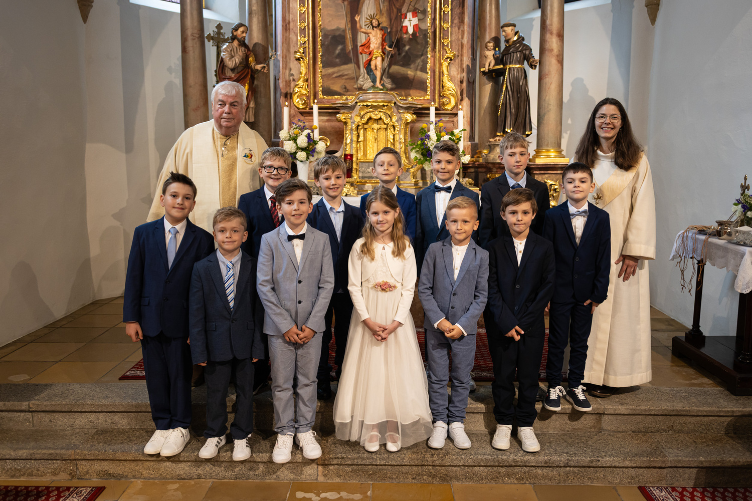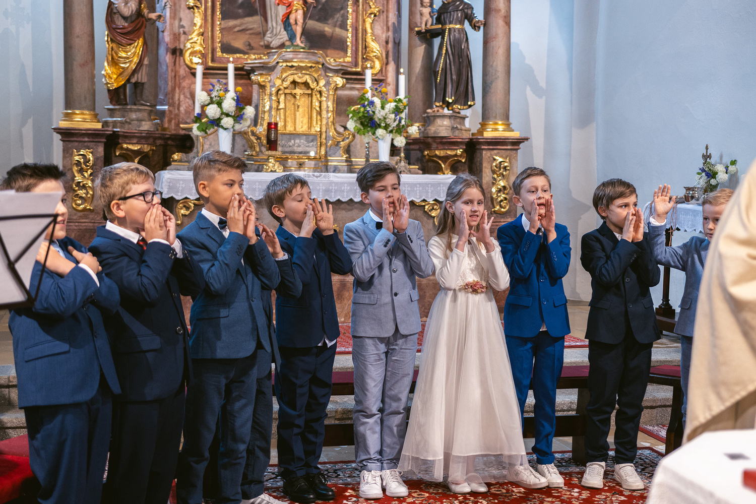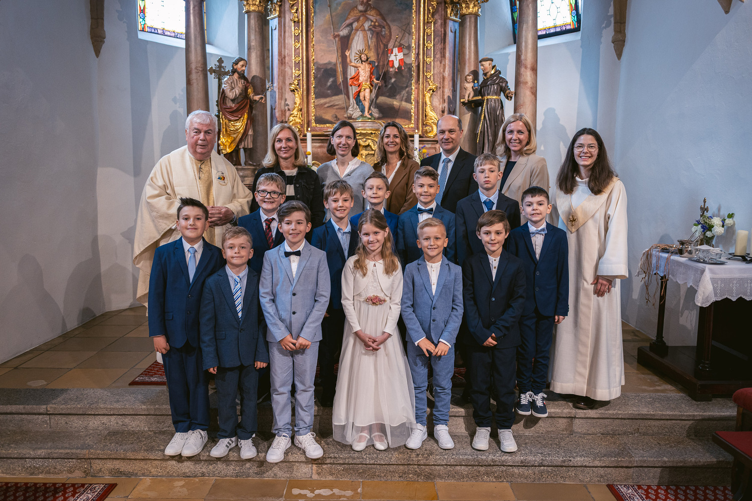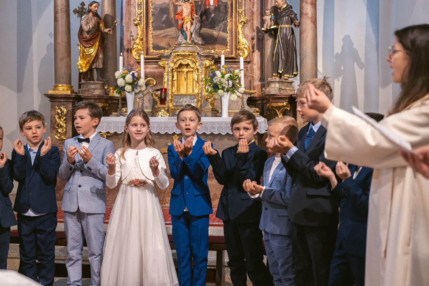 Am Sonntag, den 4. Mai feierten 12 Kinder unserer Pfarre das Fest der Hl. Erstkommunion. Gut auf diesen Tag vorbereitet, empfingen sie während der wunderschön gestalteten Messe zum ersten Mal die heilige Kommunion. Im Anschluss ging es, begleitet von der Musik, zum Pfarrheim. Dort gab es für die Kinder und allen Gästen eine kleine Stärkung und beim Marterl fand die Dankandacht statt. Es war nicht nur für die Kinder und ihren Familien ein besonderer Tag sondern für die gesamte Pfarre ein Festtag. Viele haben dazu beigetragen, dass dieser Tag den Kindern sicherlich in schöner Erinnerung bleibt. Herzlichen Dank dafür!