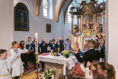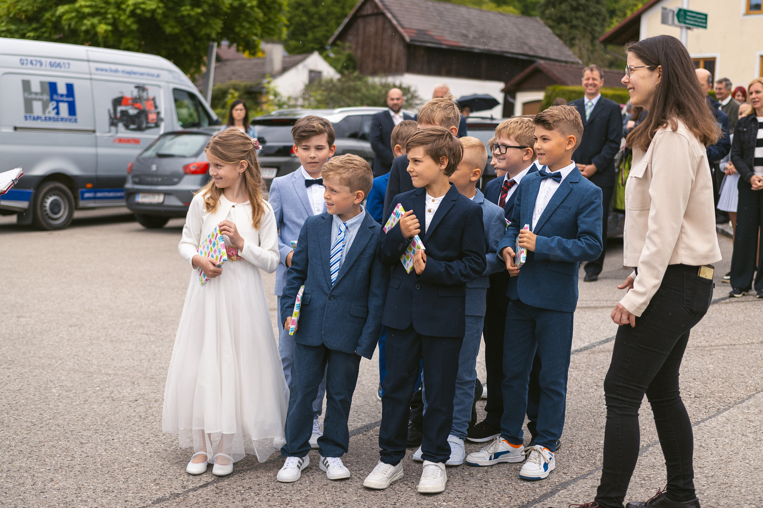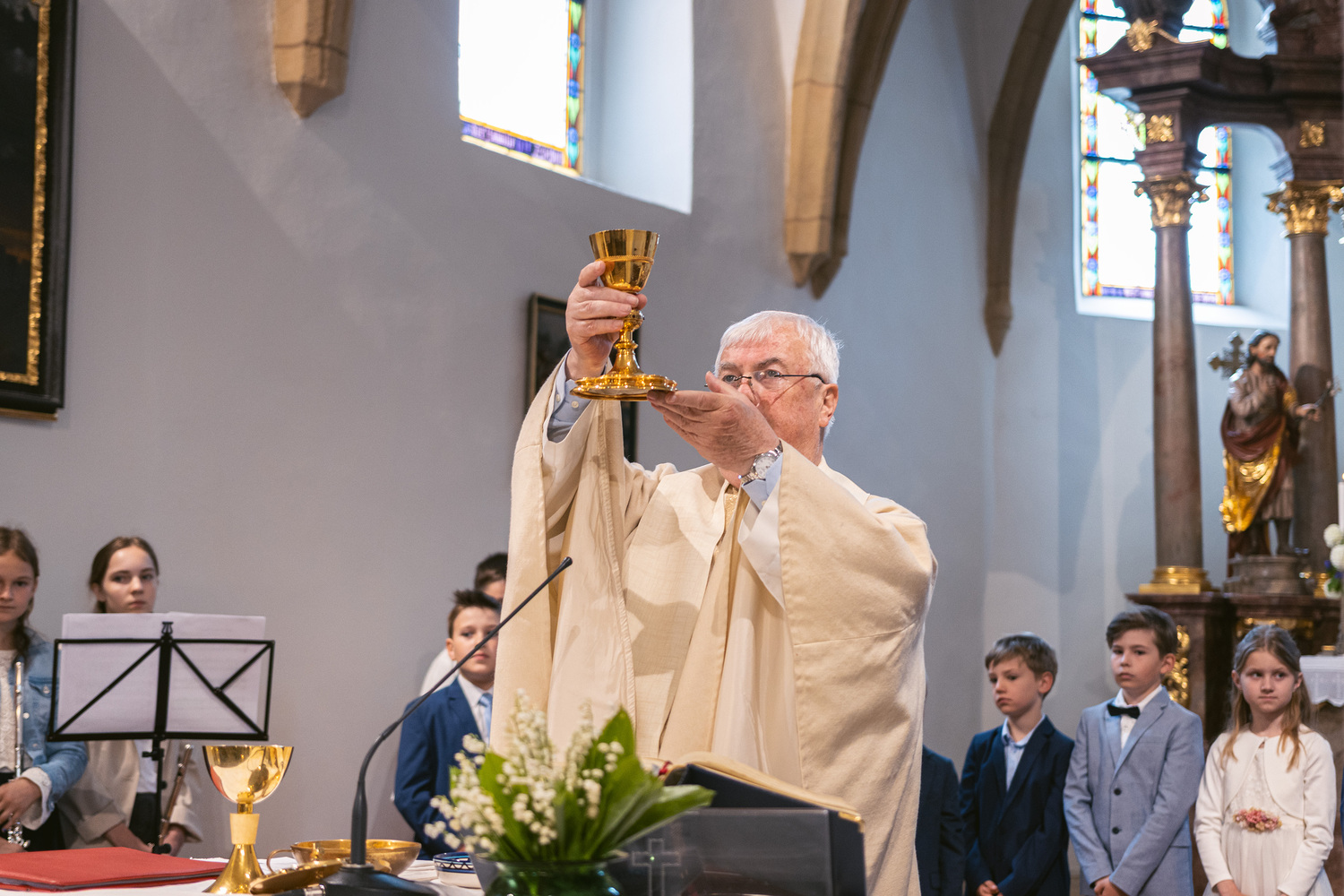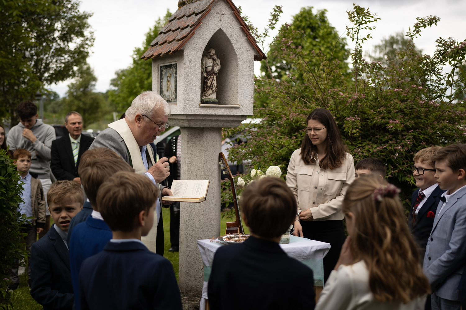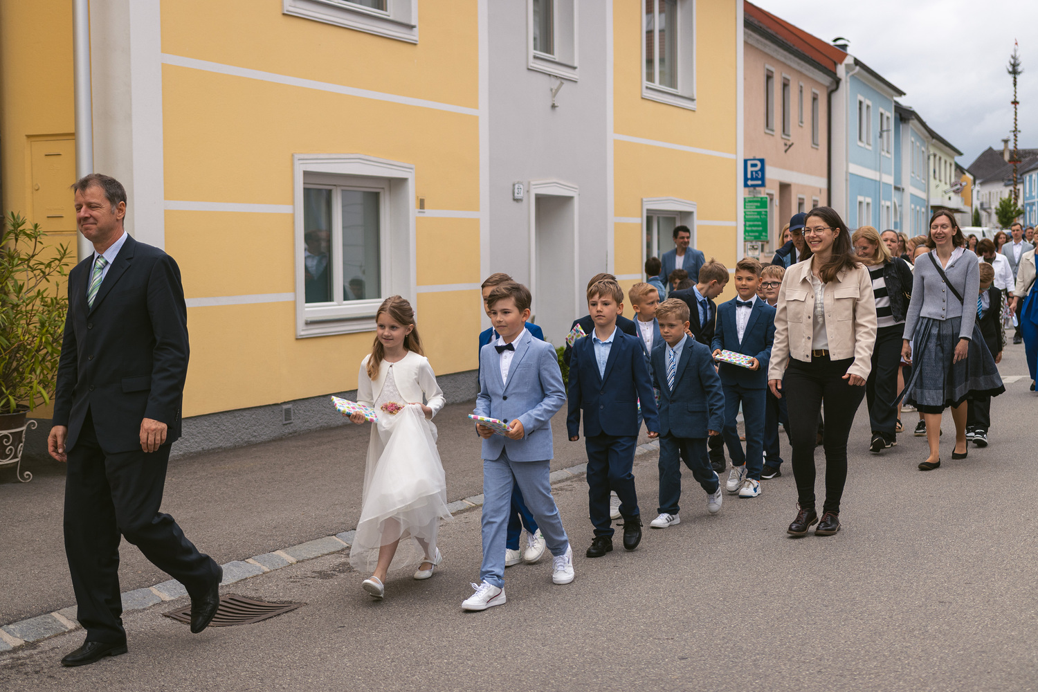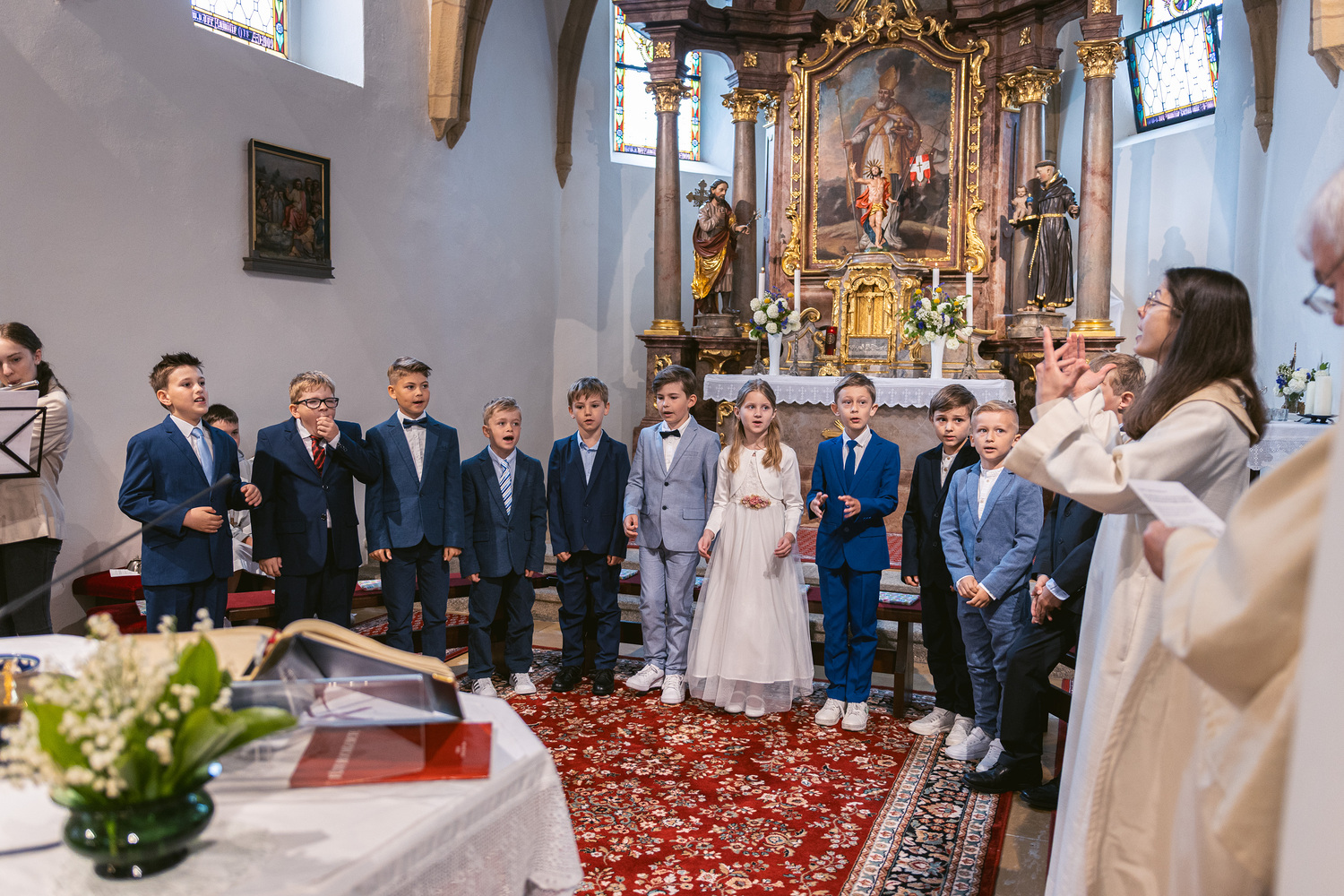 Am Sonntag, den 4. Mai feierten 12 Kinder unserer Pfarre das Fest der Hl. Erstkommunion. Gut auf diesen Tag vorbereitet, empfingen sie während der wunderschön gestalteten Messe zum ersten Mal die heilige Kommunion. Im Anschluss ging es, begleitet von der Musik, zum Pfarrheim. Dort gab es für die Kinder und allen Gästen eine kleine Stärkung und beim Marterl fand die Dankandacht statt. Es war nicht nur für die Kinder und ihren Familien ein besonderer Tag sondern für die gesamte Pfarre ein Festtag. Viele haben dazu beigetragen, dass dieser Tag den Kindern sicherlich in schöner Erinnerung bleibt. Herzlichen Dank dafür!