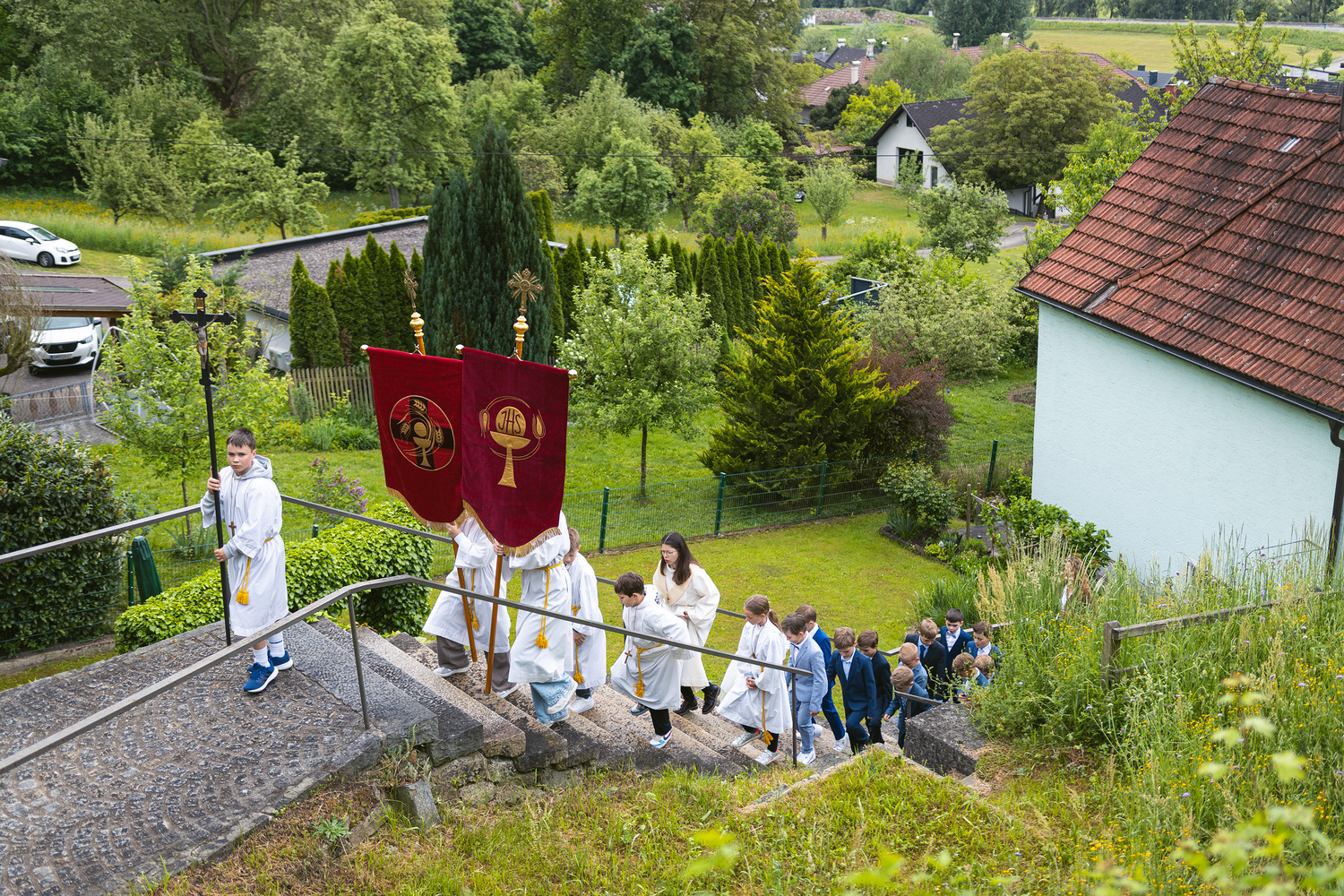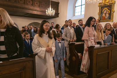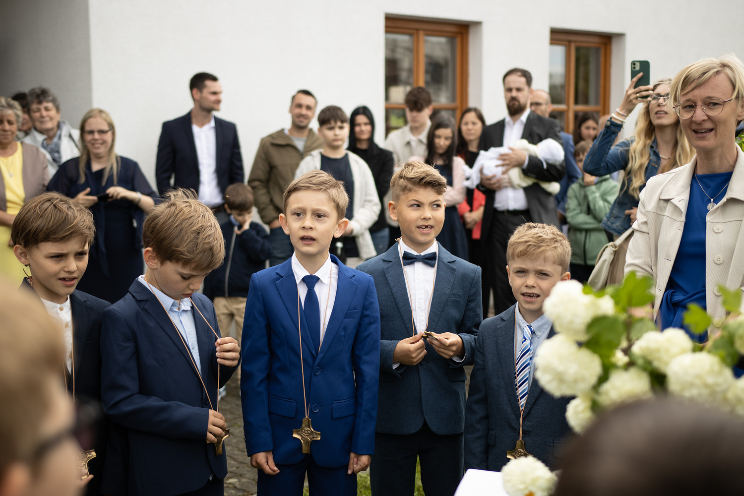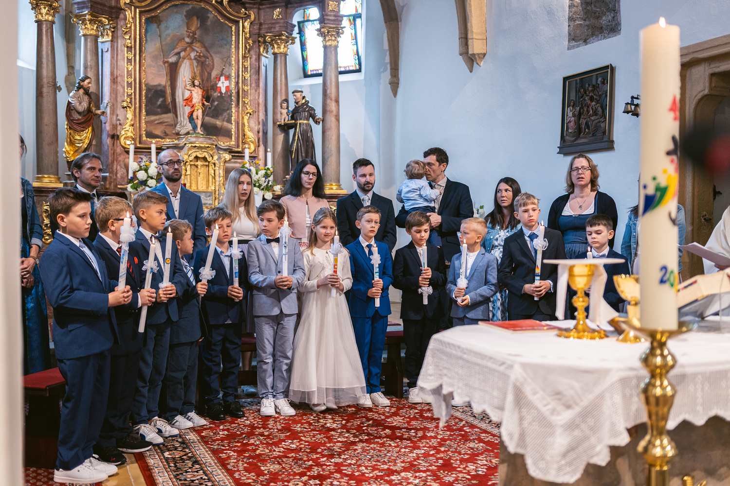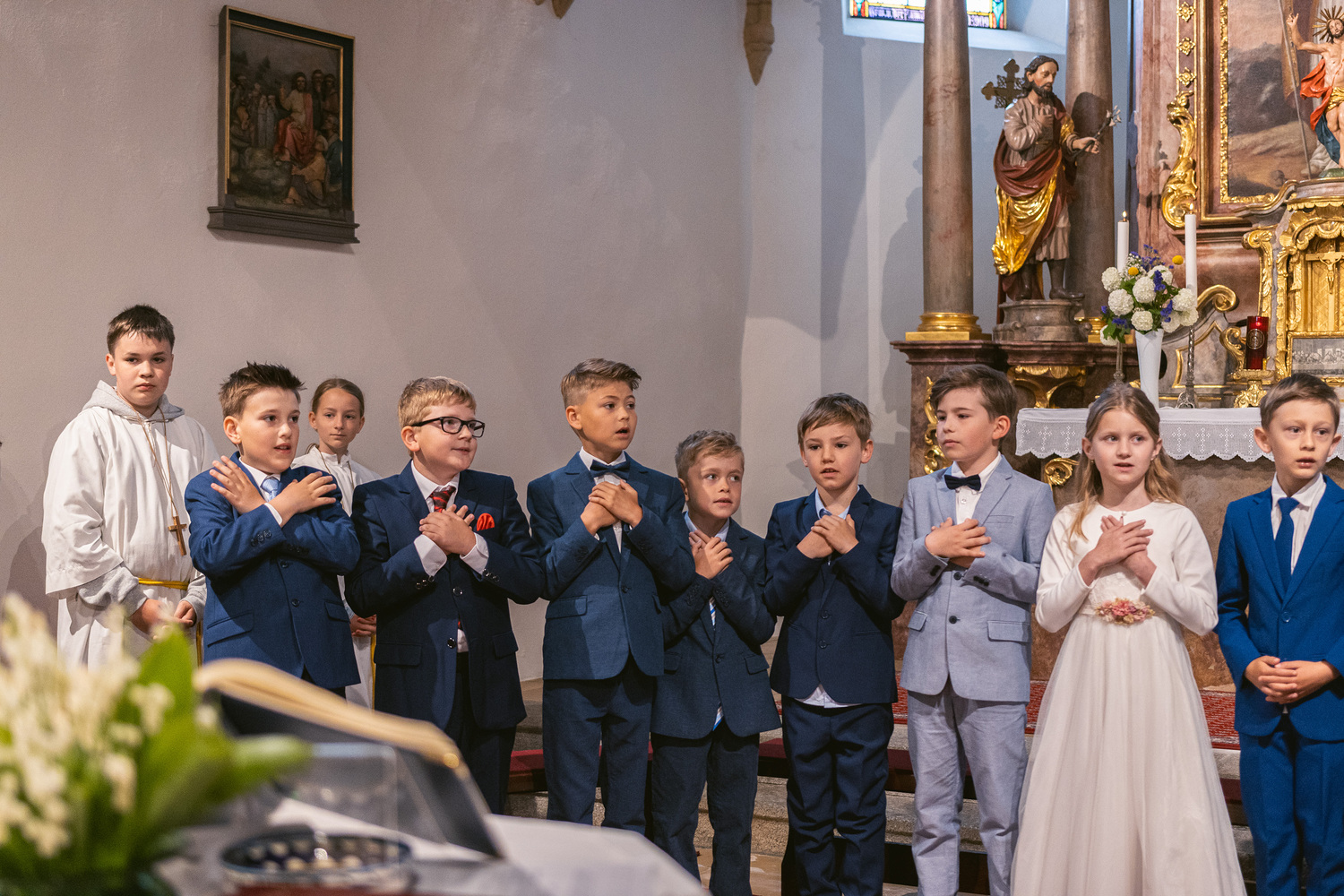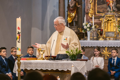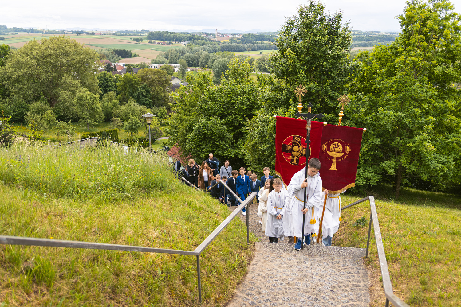 Am Sonntag, den 4. Mai feierten 12 Kinder unserer Pfarre das Fest der Hl. Erstkommunion. Gut auf diesen Tag vorbereitet, empfingen sie während der wunderschön gestalteten Messe zum ersten Mal die heilige Kommunion. Im Anschluss ging es, begleitet von der Musik, zum Pfarrheim. Dort gab es für die Kinder und allen Gästen eine kleine Stärkung und beim Marterl fand die Dankandacht statt. Es war nicht nur für die Kinder und ihren Familien ein besonderer Tag sondern für die gesamte Pfarre ein Festtag. Viele haben dazu beigetragen, dass dieser Tag den Kindern sicherlich in schöner Erinnerung bleibt. Herzlichen Dank dafür!