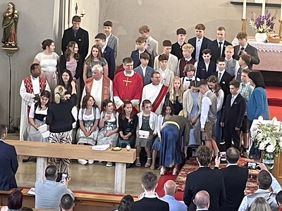 Am Samstag, den 7. Juni fand in der Kirche Stephanshart die Pfarrverbandsfirmung statt und stand unter dem Motte "You raise me up" Dieses Motto bedeutet so viel wie " Erhebe mich und Stärke mich" Unsere Pfarre war in diesem Jahr für die Organisation zuständig. Die Feier wurde von Dr. Gerhard Reitzinger geleitet und in seiner Ansprache betonte er, dass das Sakrament der Firmung die Einladung sei, mit dem Heiligen Geist im Herzen mutig und vertrauensvoll durch das Leben zu gehen. Der Höhepunkt war die Spendung des Sakramentes. Musikalisch und inhaltlich wurde die Messe sehr ansprechend und feierlich gestaltet.