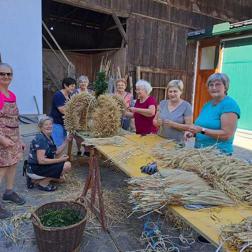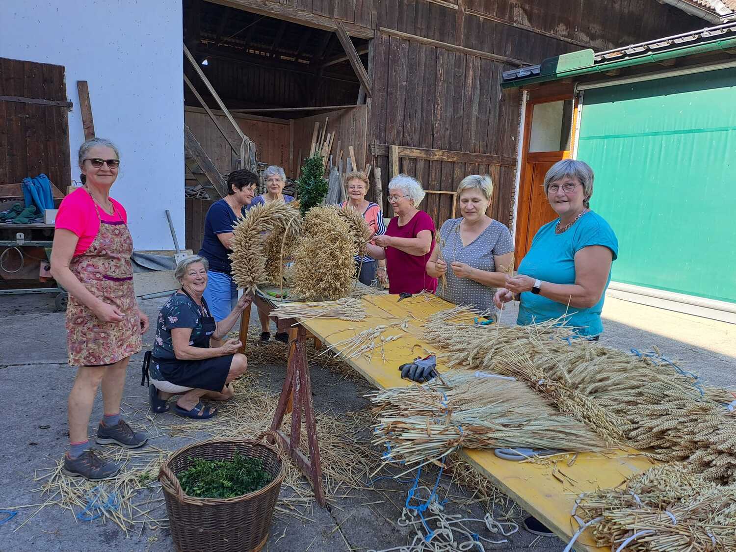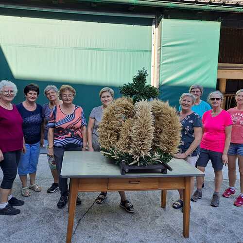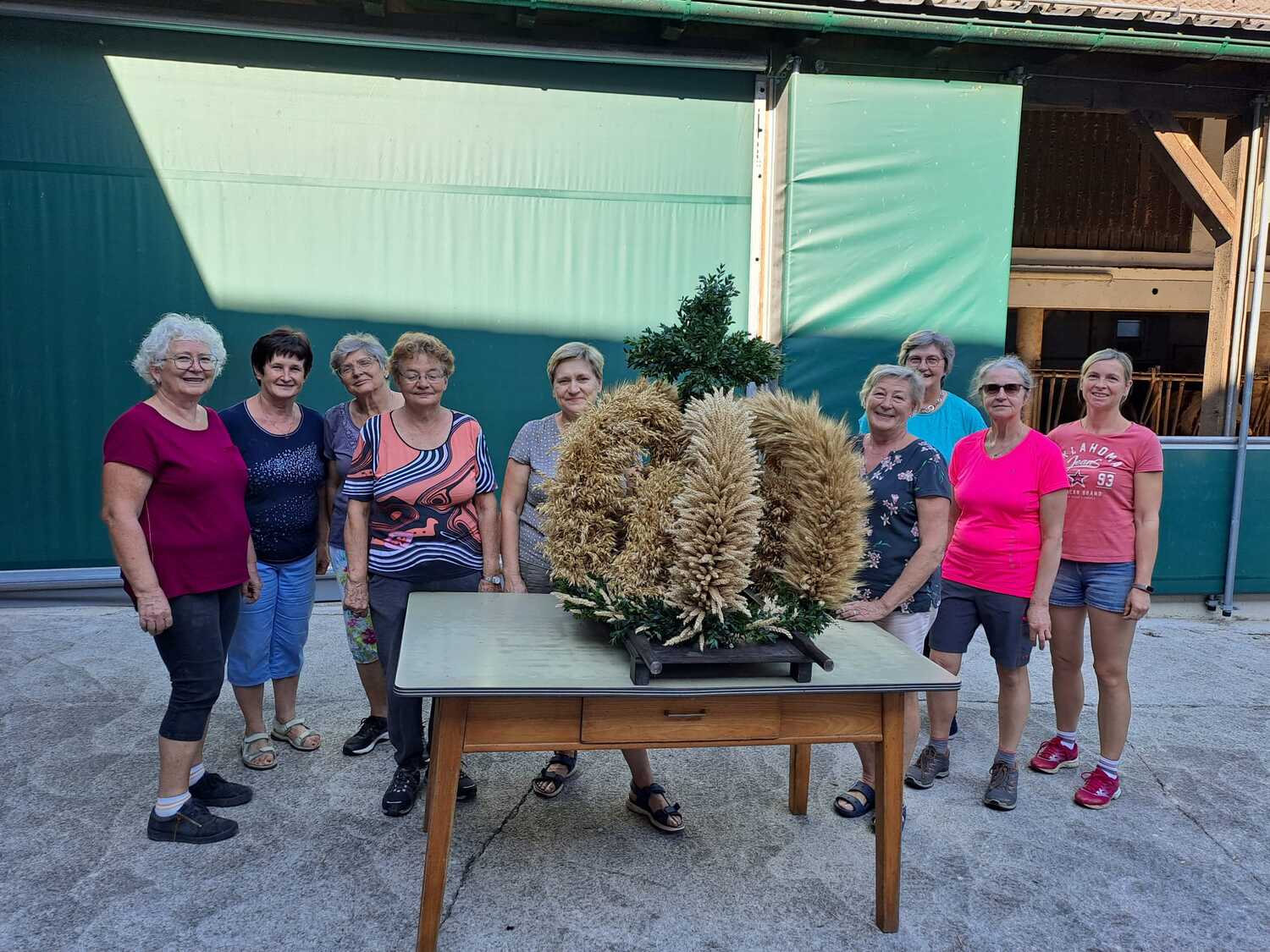Einige Tage zuvor wurde von den Damen des Kirchenschmucks die Erntekrone im Hause Prinz gebunden. Herzlichen Dank dafür!