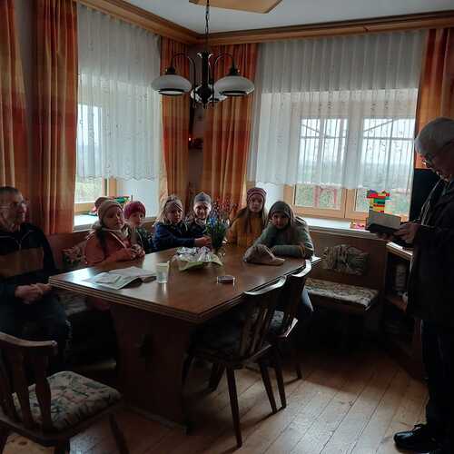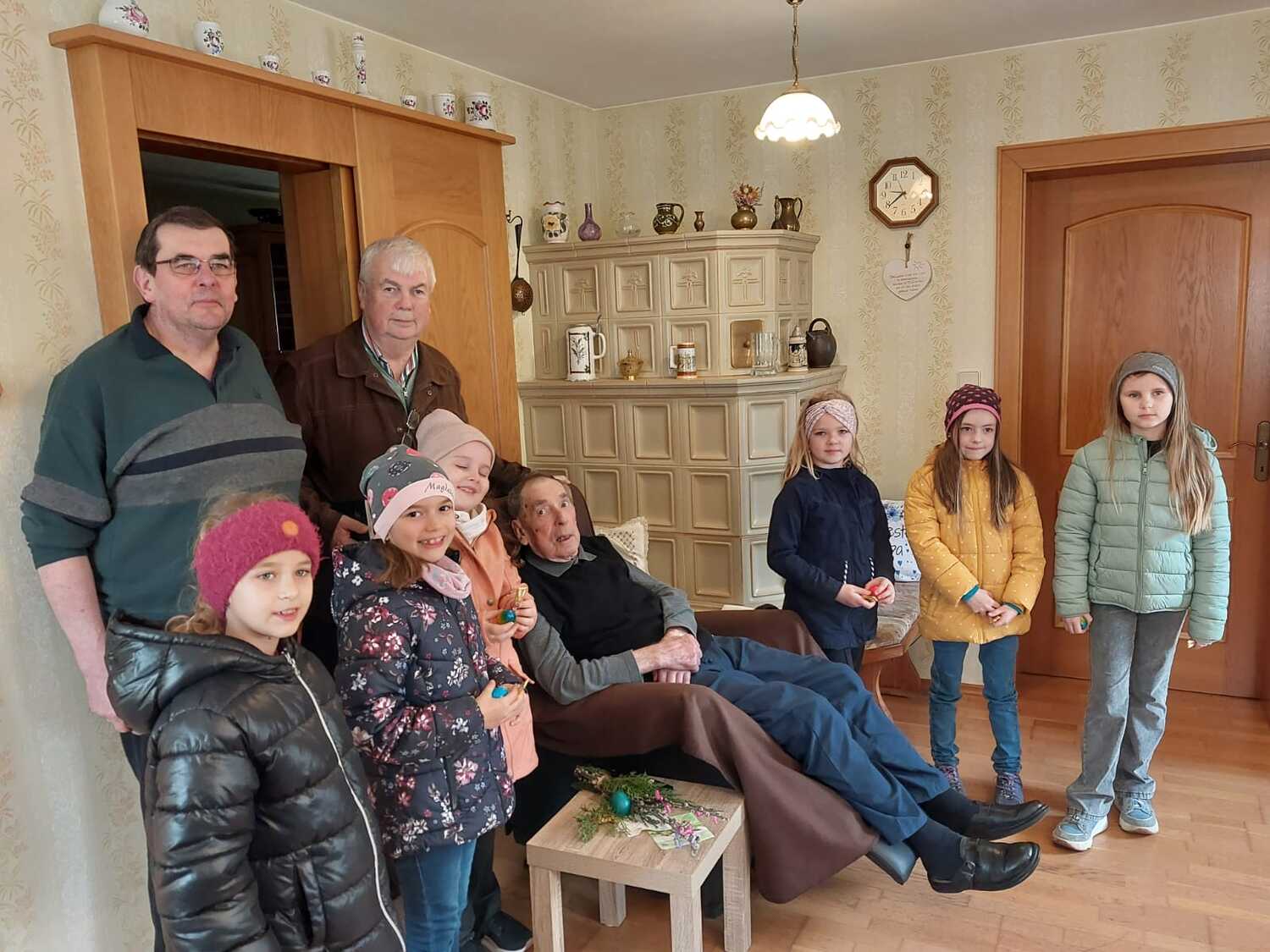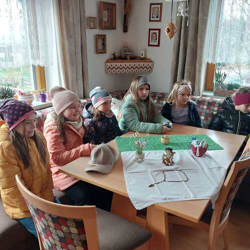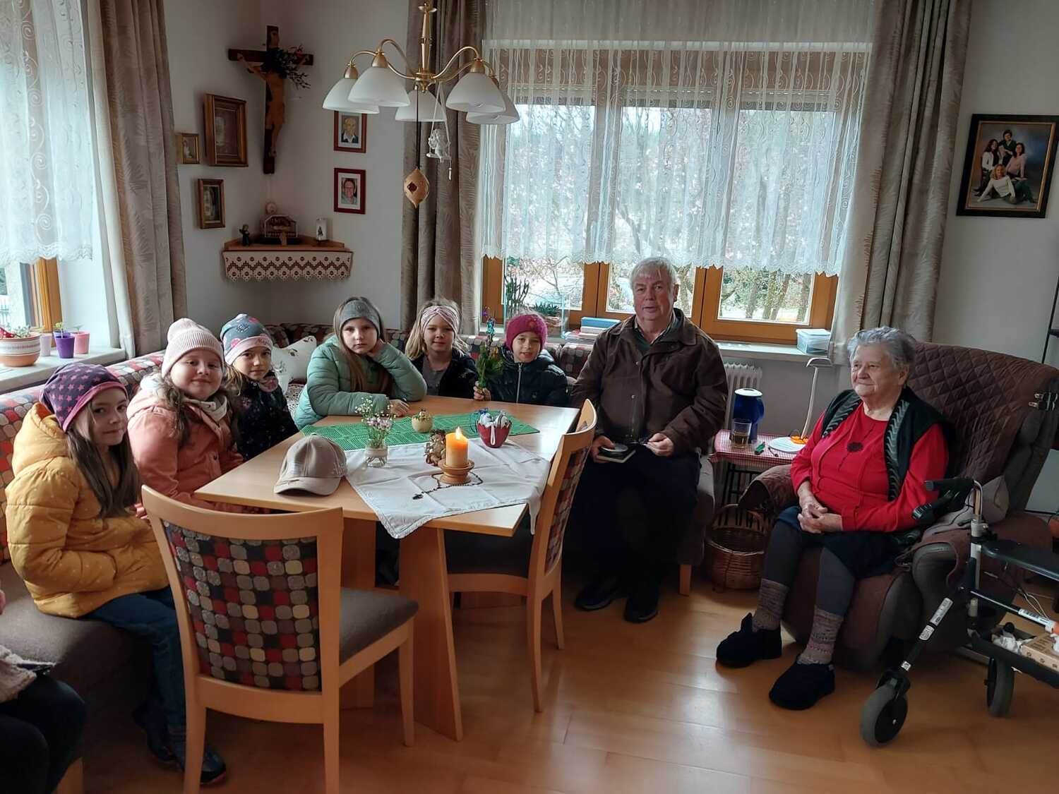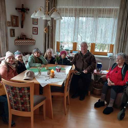 Am Montag, den 25. März war unser Hr. Pfarrer mit der Krankenkommunion in unserer Pfarre unterwegs. Er besucht regelmässig mit seinem Team jene Menschen, denen es leider nicht mehr möglich ist - mit uns den Gottesdienst in der Kirche gemeinsam zu feiern. Zu Ostern durften unserer EK-Kinder unseren Hr. Pfarrer begleiten. Die Kinder haben Palmbesen gebunden, diese haben sie am Palmsonntag segnen lassen. So war es ihnen möglich, diese gesegneten Palmbesen an die älteren Menschen zu verteilen. Dankeschön an unseren Hr. Pfarrer und die Begleitpersonen. Danke an die Kids, dass ihr euch darauf eingelassen habt. Es war auf beiden Seiten ein wunderschönes und einmaliges Erlebnis. Ein ganz besonderer Dank all jenen, die unseren Kindern die Tür geöffnet haben und die Kids so unendlich freundlich und dankbar aufnahmen.