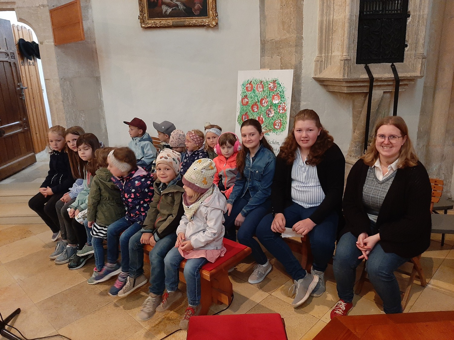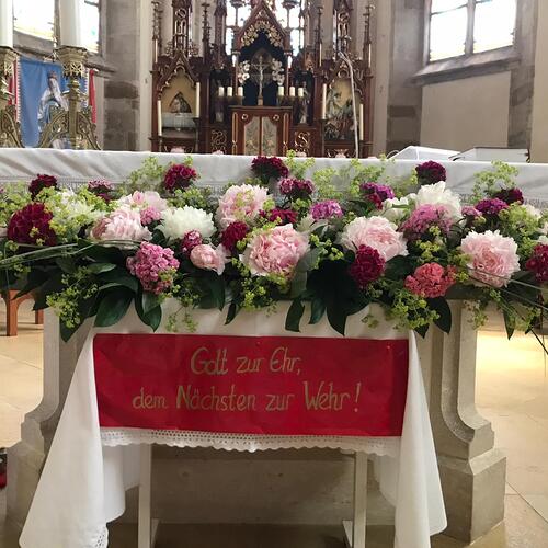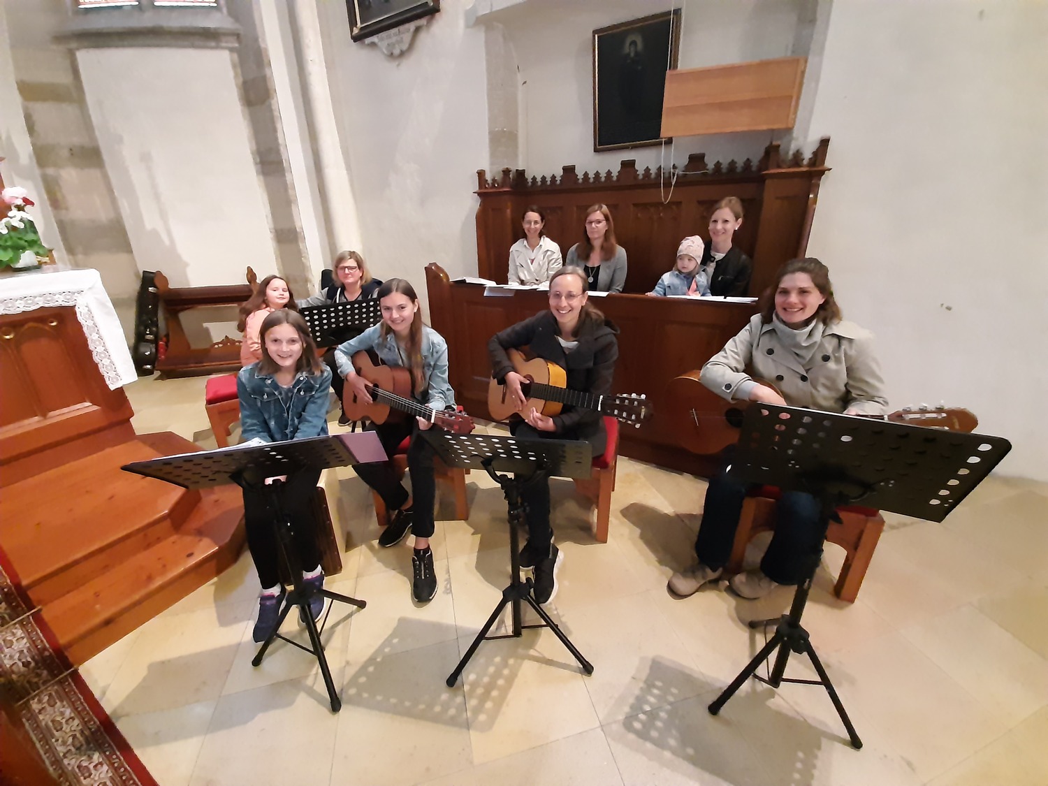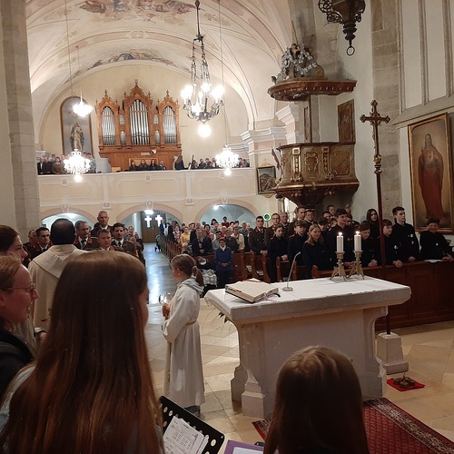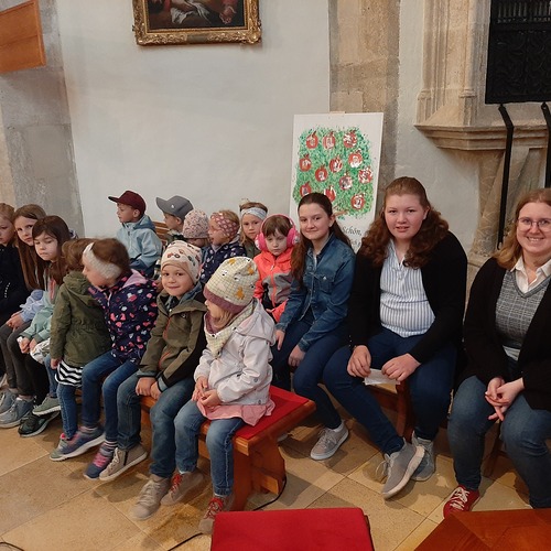 Danach feierten sie den Gottesdienst, der von der Blasmusikkapelle und dem Kinderchor musikalisch gestaltet wurde. Der Kinderchor übte dafür ein eigenes Feuer und Flamme - Lied.