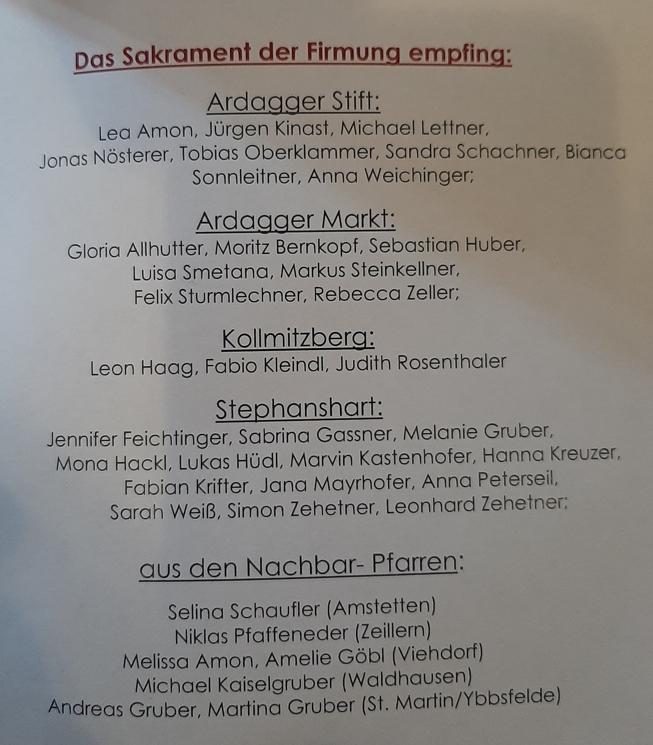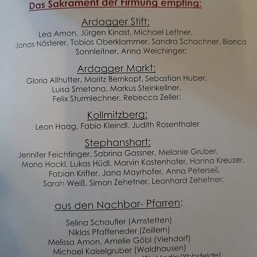 Am 22. Juni empfingen 38 Jugendliche in Stephanshart das Sakrament der Firmung. Auch unsere fünf Firmlinge wurden von Abt P. Pilsinger durch den Hl. Geist gestärkt. Es war ein großartiges Fest, wo man die Kraft und das Feuer des Hl. Geistes spüren konnte.