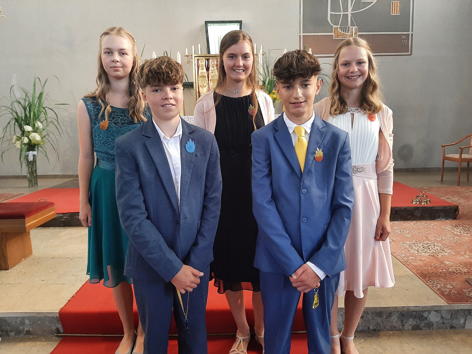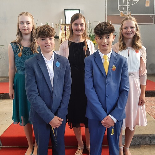 Wir wünschen Amelie, Melissa, Judith, Fabio und Leon alles Gute für ihren weiteren Lebensweg. Möget ihr Vertrauen, Zuversicht, Gottes Liebe und Verantwortung immer spüren,.. dann wird euer Leben gelingen. So wie Abt Pilsinger in seiner Predigt ausführte...sonst brennt der Huat.