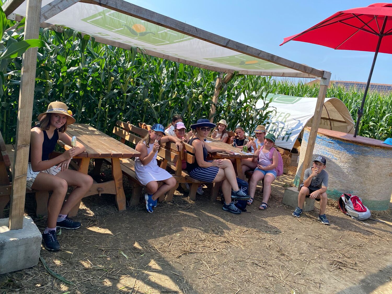 Am 09. Juli waren die Kollmitzberger Minis im Maislabyrinth in Kronstorf unterwegs. Dort galt es, einen Weg zur Mitte zu finden....wie sich herausstellte, war das gar nicht so einfach. Als alle am Ziel waren, gab es in der Mitte eine kühle Eisüberraschung. Da es mega heiß war, ging der Ausflug im Pool zu Ende. Eine Pizza für alle war dann der krönende Abschluss. Vielen herzlichen Dank an Manuela und Evelyn für die coole Idee, und die Umsetzung.