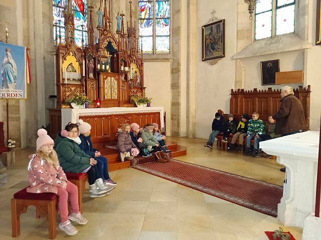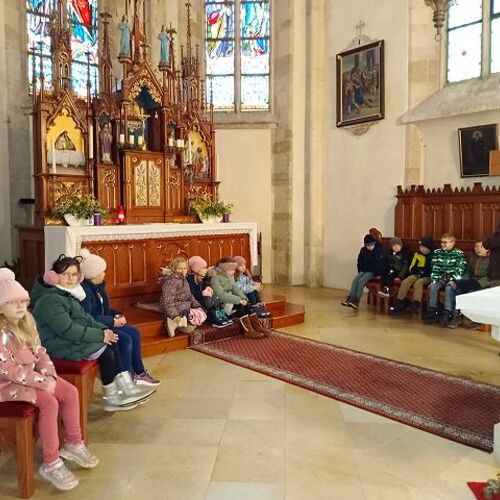 Ende November kamen unsere 12 Erstkommunionkinder zusammen, um sich auf das Fest der Erstkommunion vorzubereiten. Beim ersten Treffen wurde gebastelt und geprobt. Beim zweiten Treffen gab es eine exklusive Kirchenführung unseres Hr. Pfarrers. Kein anderer kennt die verborgenen Winkel unserer Kirche am Besten. Schön, dass ihr da gewesen seid. Herzlichen Dank auch an die Eltern, die ihre Kinder zum Sakrament der Erstkommunion begleiten.