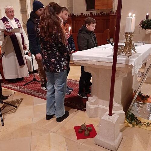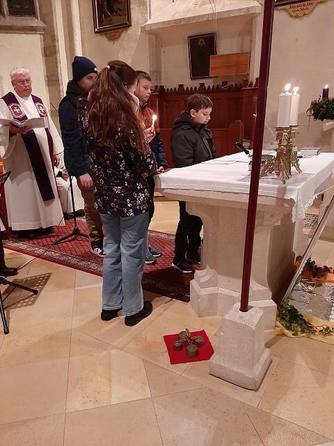 Am 30. November feierte unser Hr. Pfarrer mit uns die Adventkranzsegnung. Diese wurde von den Firmlingen mitgestaltet. Die musikalische Gestaltung übernahmen Anna und Johanna auf der Gitarre und die Fam. Eder spielte auf der Steirischen.