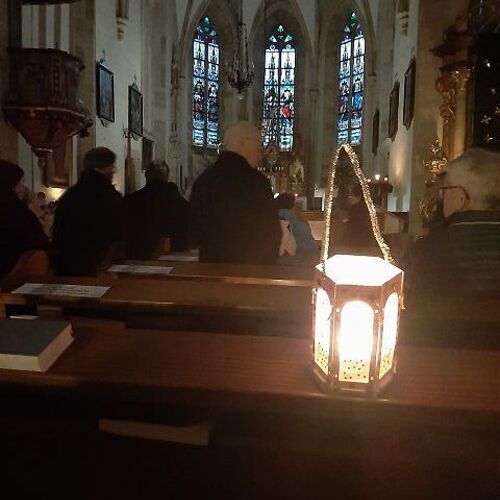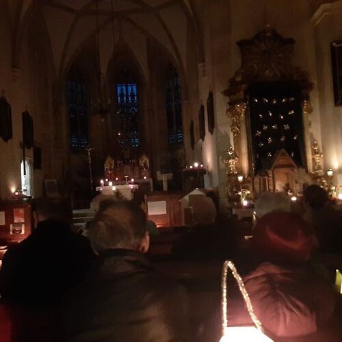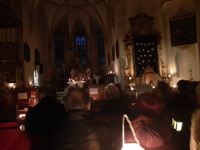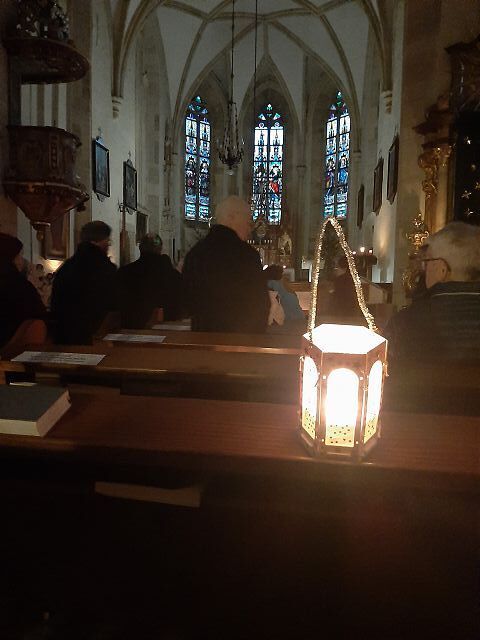 Am 21. Dezember um 07.00 Uhr feierte unser Hr. Pfarrer mit uns die Roratemesse. Die Kirche wurde nur von Kerzen und mitgebrachten Laternen erleuchtet. Im Anschluss lud der PGR zu einem Frühstück in den Pfarrtreff ein. Herzlichen Dank an Traudi für die Strietzelspende. Danke an die Mesner für die Vorbereitung und danke an Reinhard - für seinen unermüdlichen Einsatz auf der Orgel.