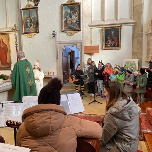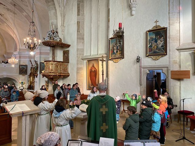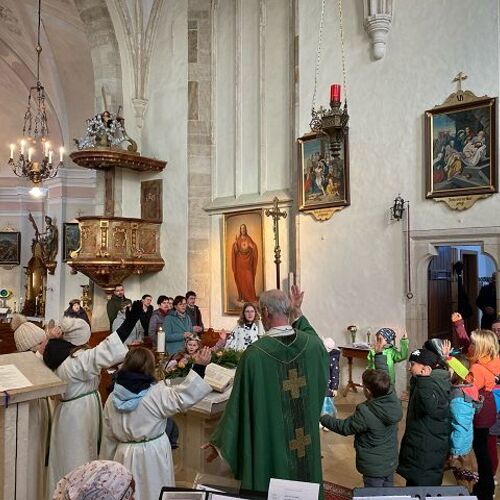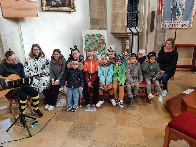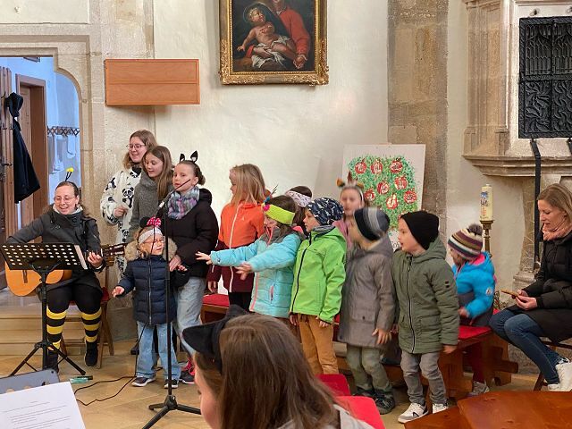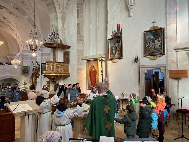 Am 02. März, Faschingssonntag feierte Pater Muttenthaler mit uns den Gottesdienst. Die musikalische Gestaltung übernahm die Gitarrengruppe und der Kinderchor wirkte tatkräftig mit. Danke an Carina und Nicole, die mit den Kindern auch probten und alles vorbereitet haben.