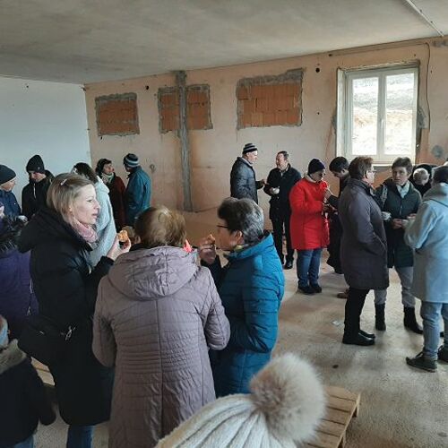 Im Anschluss lud der PGR wieder zu einem Baustellenkaffee in das neue Pfarrheim ein. Viele Interessierte folgten der Einladung und durften sich so ein Bild vom Baufortschritt machen. Schön, dass so viele Interesse zeigten.