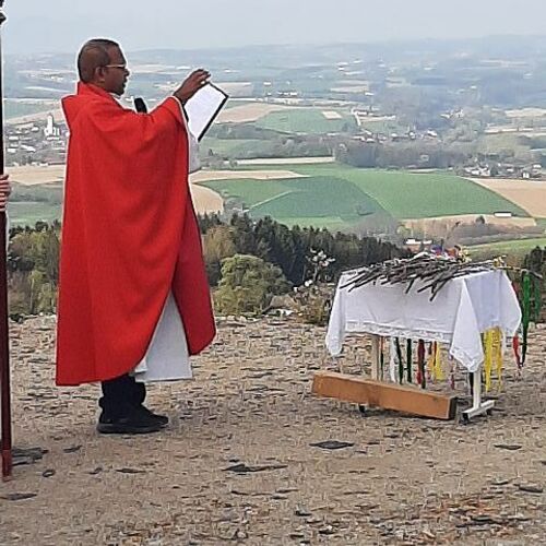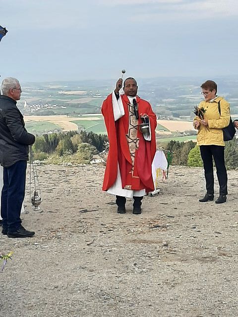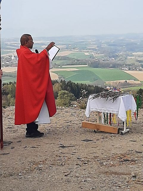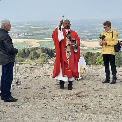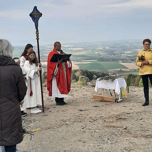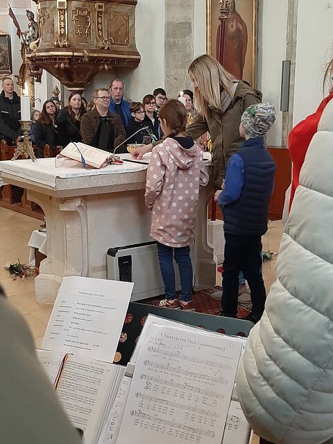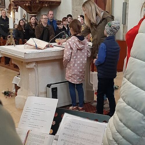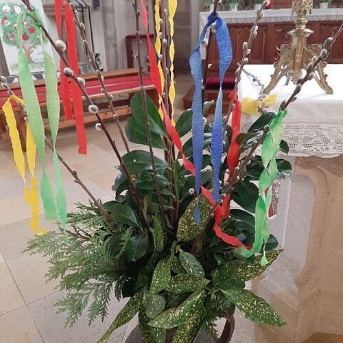 Am 13. April feierten wir bei strahlenden Sonnenschein den Palmsonntag. Die Segnung der Palmzweige fand beim Pfarrheim statt. Danach erfolgte der Einzug in unsere Pfarrkirche. Dort gestaltete Pfarrer Biju und PA Andrea mit dem Kinderchor und der Gitarrengruppe den Gottesdienst mit. Dankeschön an die EK-Kinder und die Firmlinge: diese übernahmen die Fürbitten und die Passionsgeschichte in verteilten Rollen.