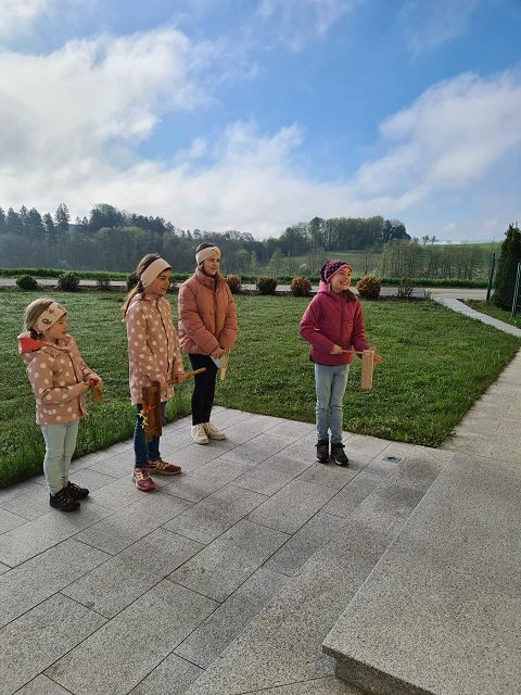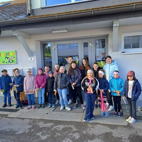 Am 19. April, dem Karsamstag waren unsere Ratschenkinder am vormittag wieder im gesamten Pfarrgebiet unterwegs. Mit ihren Ratschen erinnerten sie die Leute an die Gebetszeiten. Vielen lieben Dank für die Ostereier, die Süssigkeiten und die Geldspenden - damit wird im Sommer ein gemeinsamer Ausflug gemacht.