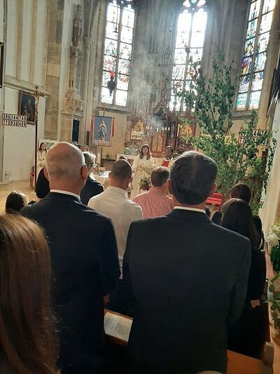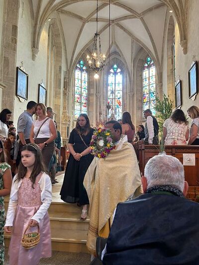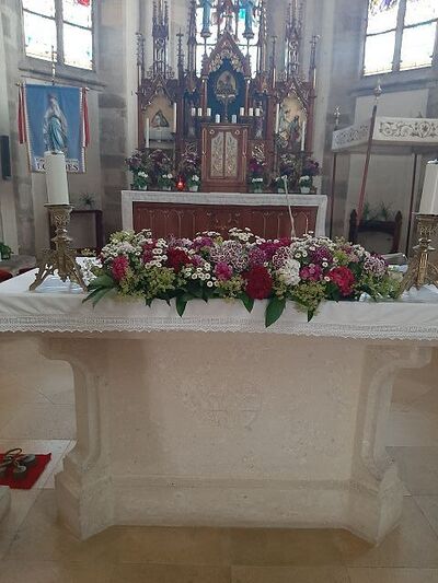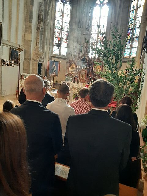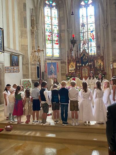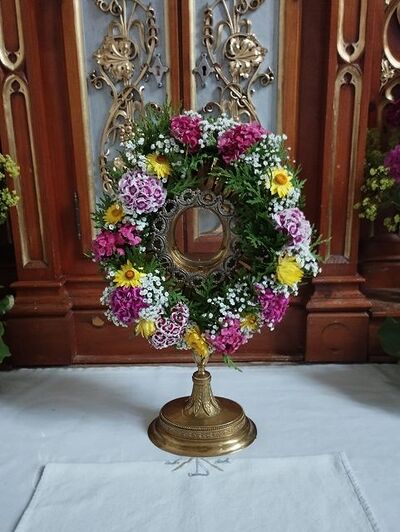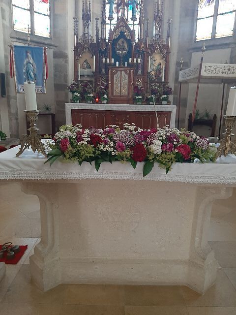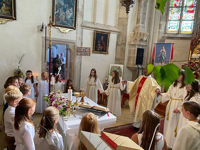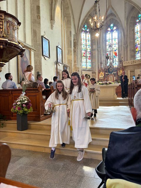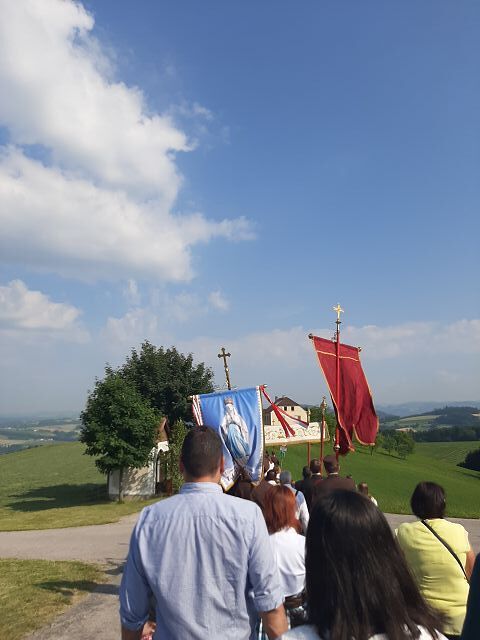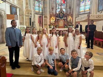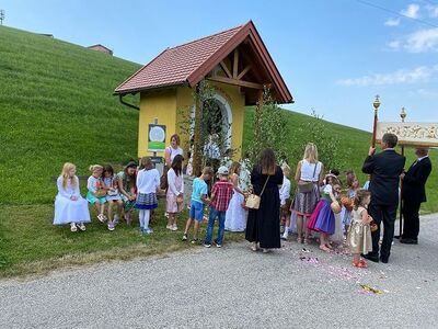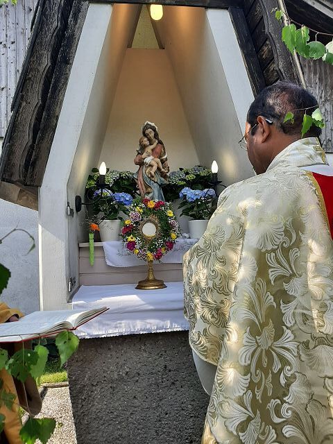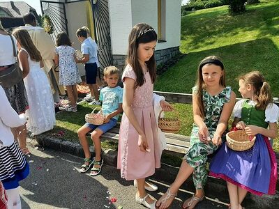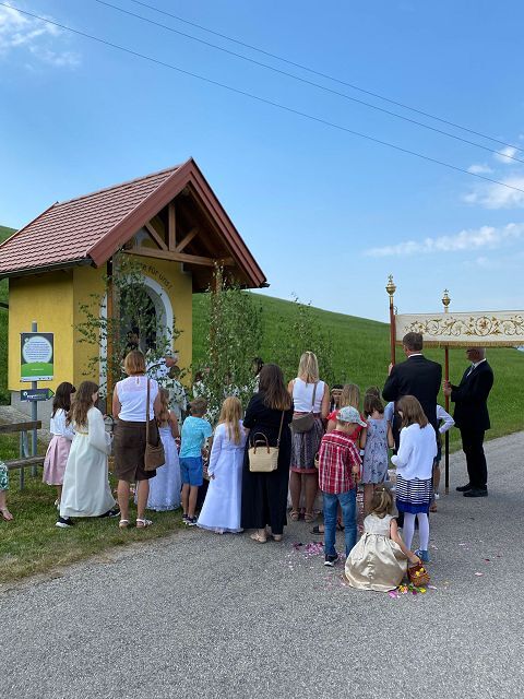 Am 19. Juni feierten wir Fronleichnam. Pfarrer Biju gestaltete den Gottesdienst und die Prozession. Danke an Engelbert für die Aufgabe des Vorbeters. Dankeschön an die Jugend, EK-Kinder, Feuerwehr und Musik für die Mitgestaltung des Umzuges. Danke für den tollen Blumenschmuck bei der Monstranz und in der Kirche. Dank gebührt auch den Kapellenbesitzern, die ihre Kapellen für die Pfarrbevölkerung öffneten.