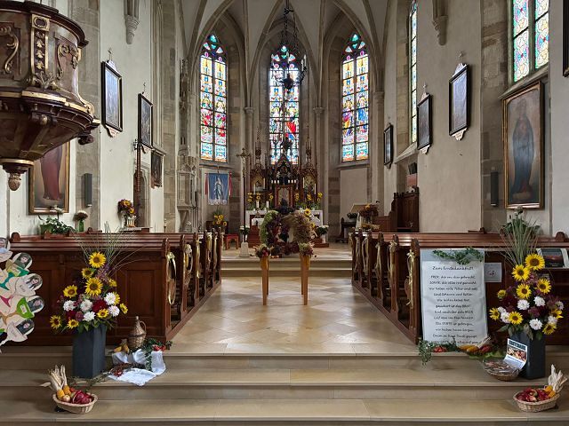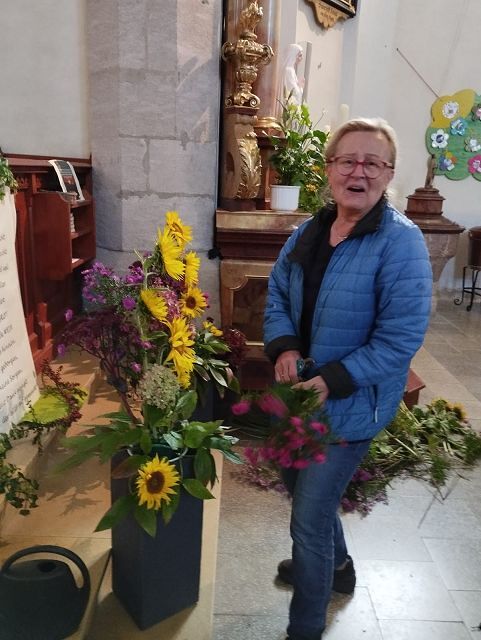 Dankesworte gebühren an diesem Tag Traudi, Gabi und Gerti für das liebevolle Binden der Erntedankkrone, dies nimmt immer sehr viel Zeit in Anspruch. Vielen Dank an unsere Blumenfee Christine, die immer wieder eine wunderschön gestaltete Kirche zaubert. Last but not least gebührt der Dank dem PGR für den Zusammenhalt und das organisieren dieses wunderschönen Festes.