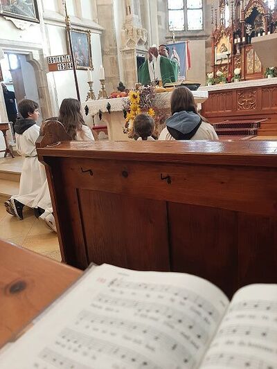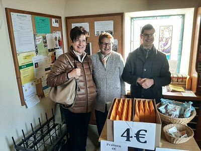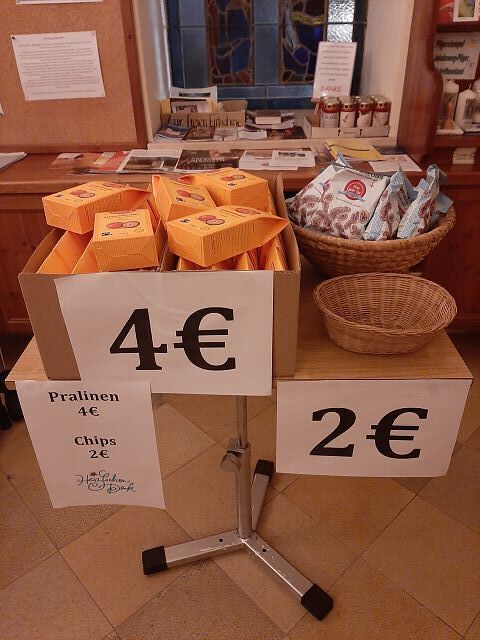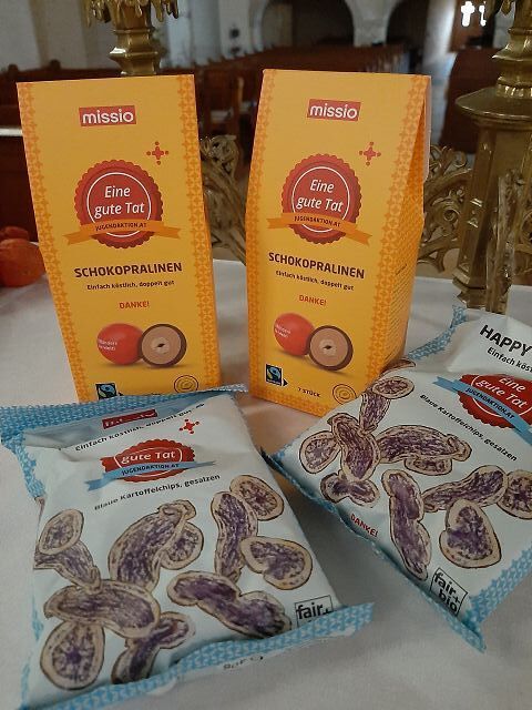 Im Anschluss wurde im Rahmen der Missio-Jugendaktion Schokopralinen und blaue Chips verkauft. Vielen Dank an Erika und Patrick und an die Minis, die den Verkauf durchführten und fleißig die Werbetrommel rührten. Herzlichen Dank für die zahlreichen Spenden, die wir an die Missio weiterleiten durften.