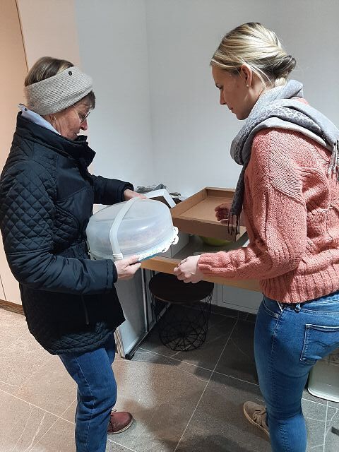 Auch unser Hr. Pfarrer spendete uns eine selbstgemachte Torte, die natürlich sofort probiert wurde. Dankeschön für den wertschätzenden Besuch und die vielen netten Gespräche.