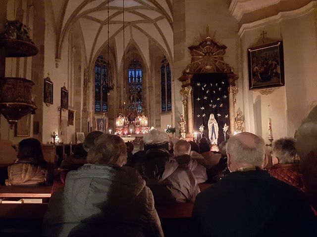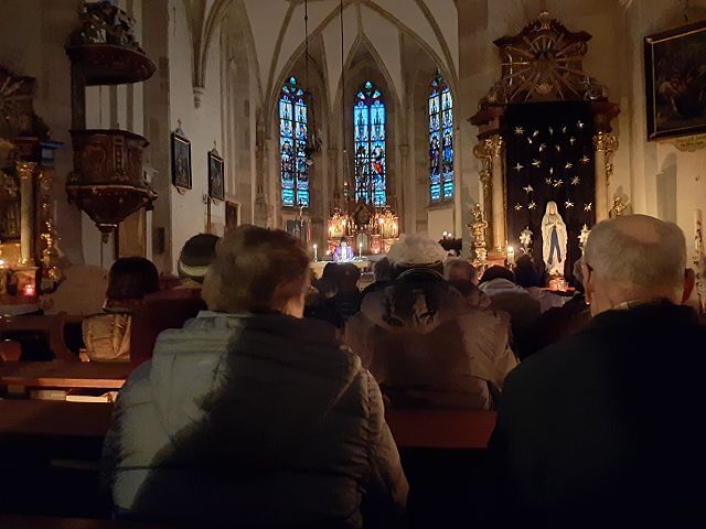 Am 20. Dezember feierte Pfarrer Biju mit uns die Roratemesse. Die Kirche wurde nur von Kerzen und den mitgebrachten Laternen erleuchtet. Es war eine besondere Stimmung spürbar, die uns perfekt auf das nahende Weihnachtsfest einstimmte. Vielen Dank an die Mesner Franz und Sepp für die Vorbereitung. Danke an Reinhard für´s orgeln. Der PGR lud im Anschluss zu einem Frühstück ins Pfarrheim ein. Herzlichen Dank an Erika, Christine und Gerti für die liebevolle Organisation.
