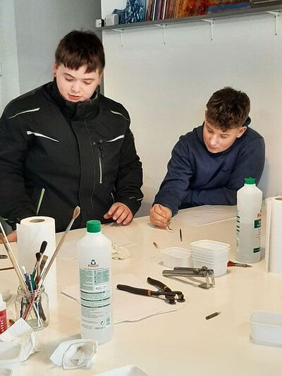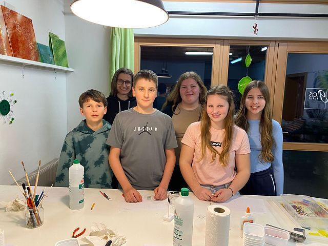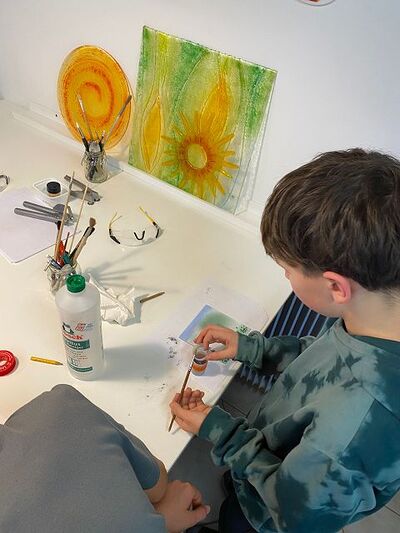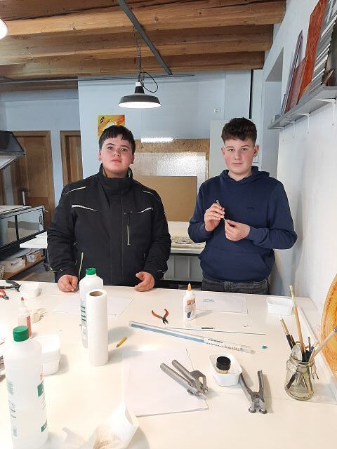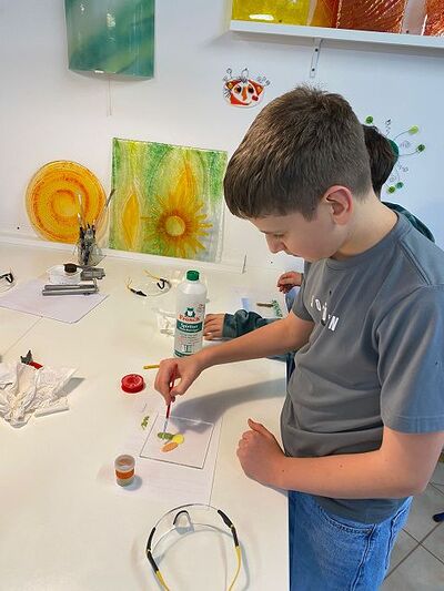 Die Kinder durften gleich einige Dinge selbst ausprobieren und waren begeistert von der Vielfalt und dem Angebot. Es entstanden sehr tolle Projekte, die nun für rund 15 Stunden in den Glasbrennofen wandern.