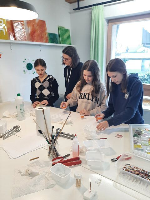 Am 13. Februar besuchten unsere Firmlinge einen Glasworkshop bei Eva Haimberger. Sie gestaltete mit ihren Glaselementen unsere Sternenkindergedenkstätte.