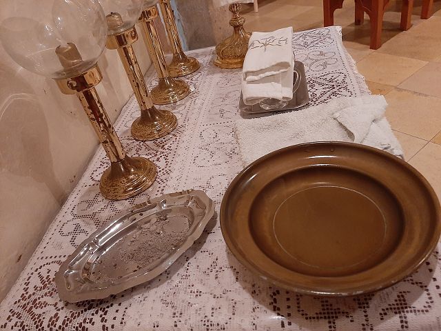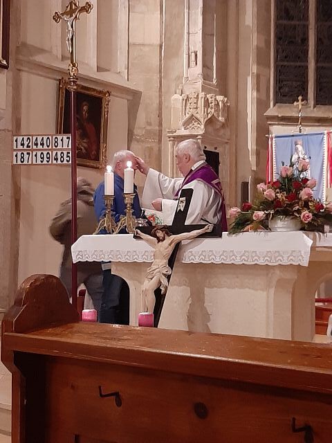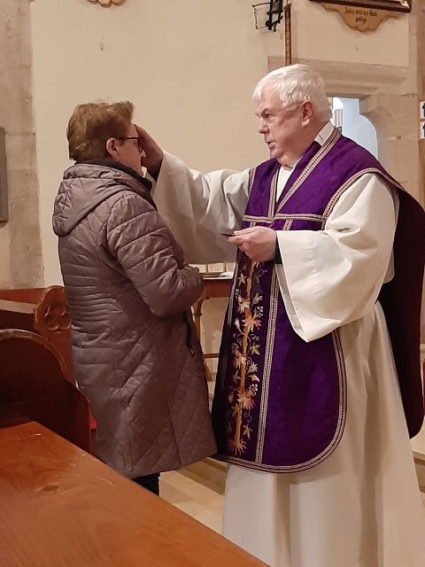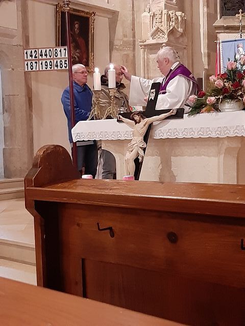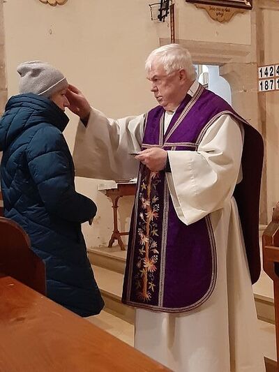 Unser Hr. Pfarrer feierte mit uns den Gottesdienst. Mit den Worten: "Bedenke, Mensch, dass du Staub bist und zum Staub zurückkehrst" zeichnete er das Kreuzzeichen mit der Asche auf die Stirn.