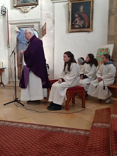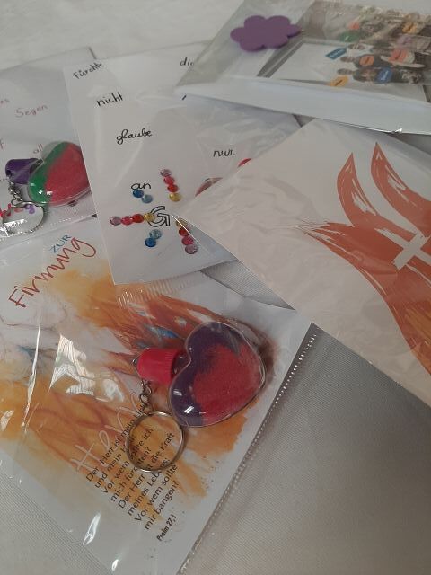 Schön, dass sich die Paten Zeit genommen haben, und mit guten Wünschen ihren Firmlingen den Rücken gestärkt haben. Unser Hr. Pfarrer konnte den Firmlingen als Erinnerung an diesen Tag einen kleinen Handschmeichler überreichen. Im Anschluss wurde der Kreuzweg von Karin und den Firmlingen mit Symbolen gestaltet.