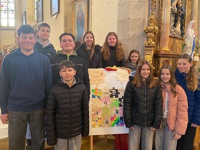 Am 08. März stellten sich unsere 10 Firmlinge der Pfarrbevölkerung vor. Das Thema der heurigen Firmung ist "viele Gaben - ein Geist".