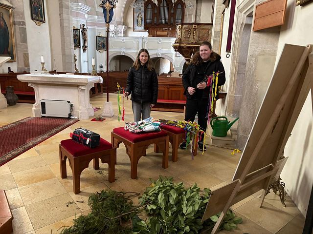 Die Kinder starteten bereits Tage davor mit dem Palmbesen binden.