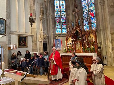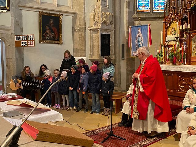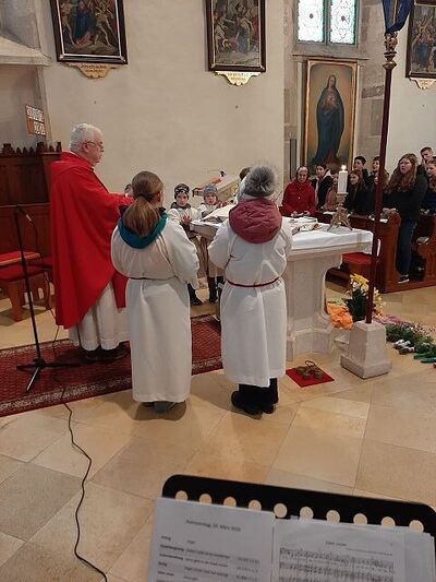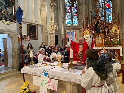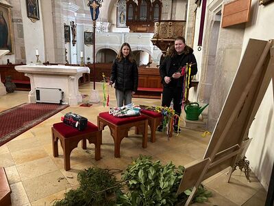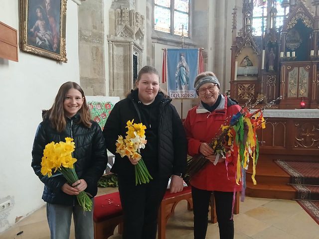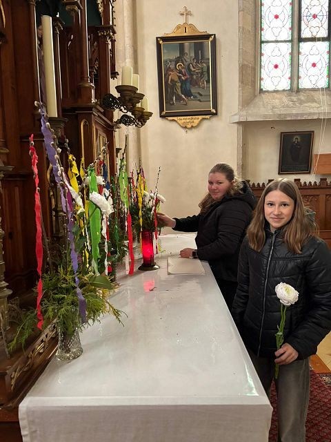 Am 29. März feierten wir mit unseren Hr. Pfarrer den Palmsonntag. Die Segnung der Palmzweige wäre im Freien geplant gewesen, aber leider machte uns das Wetter einen Strich durch die Rechnung.