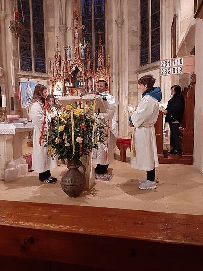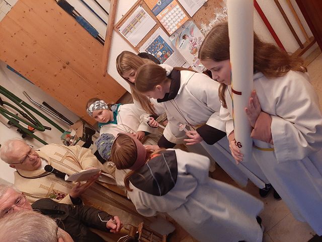 Herzlichen Dank an Pfarrer Biju, Pfarrer Schwarzl und Pfarrer Gruber. Diese feierten mit uns die Karwoche und das Osterfest. Vielen Dank an die vielen helfenden Hände, sei es der Kirchenchor und der Organist, die Blumenschmücker, die Mesner oder die Minis... zahlreiche Helfer haben im Stillen wieder alles für das Osterfest vorbereitet und zusammengeholfen. Am Ostersonntag überraschte uns die Jugend wieder mit einem geweihten Osterei.