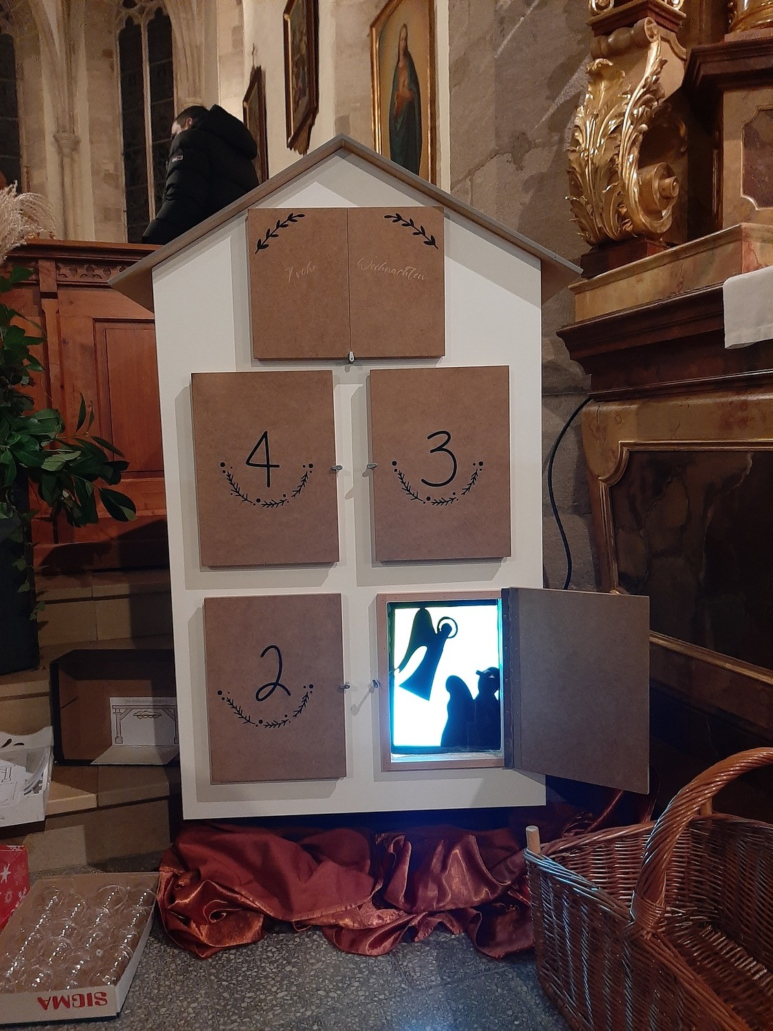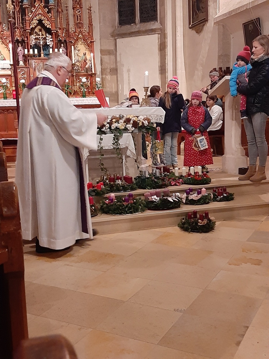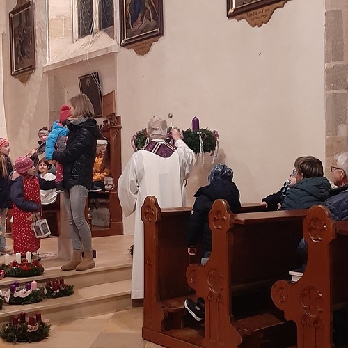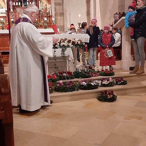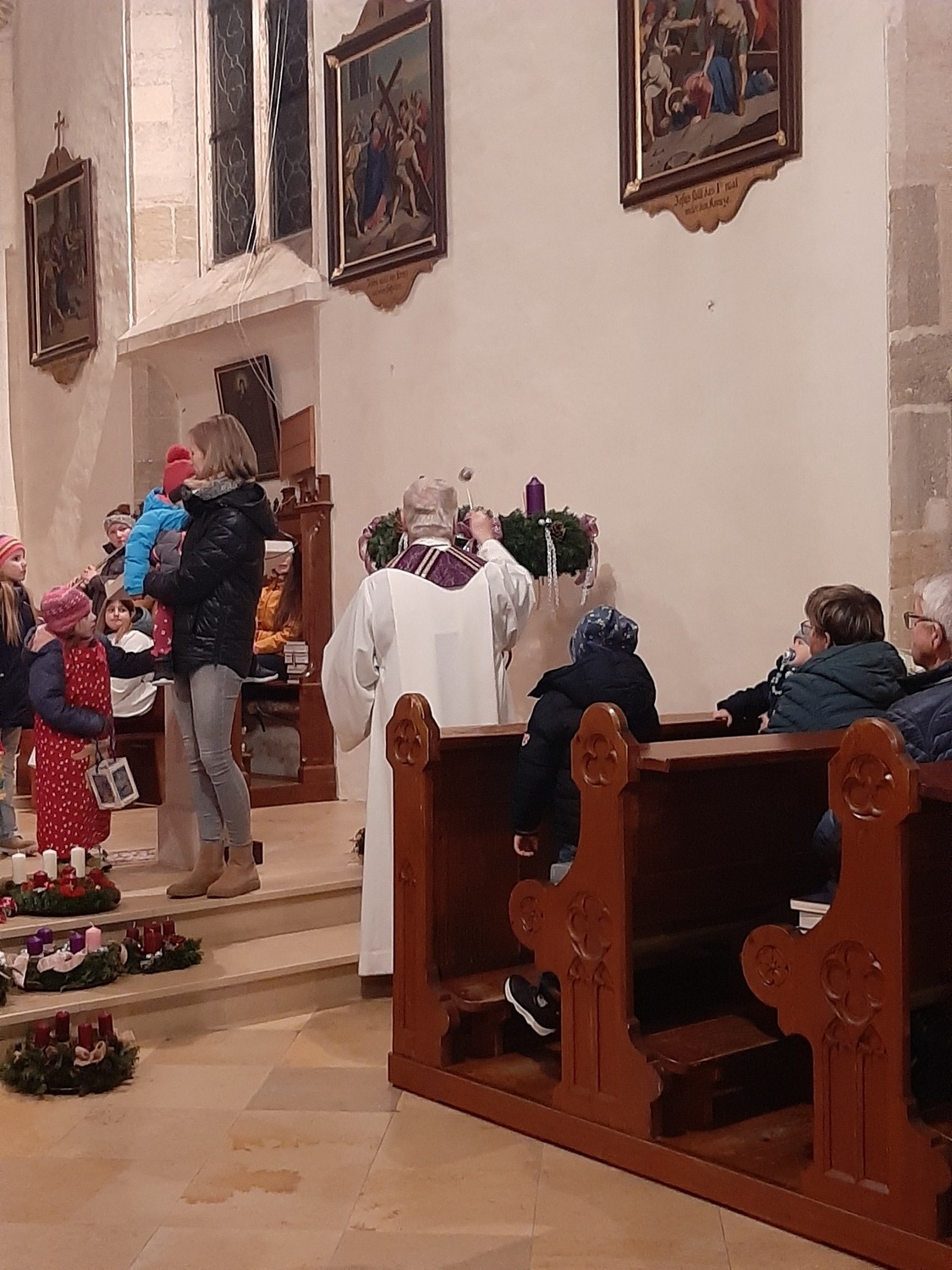 Am 02. Dezember feierte unser Hr. Pfarrer mit uns die Adventkranzsegnung. Der Kinderchor unter der Leitung des Kinderliturgieteams gestaltete diese mit. Laura und Sarah stimmten uns mit Adventliedern auf die besinnliche Zeit ein. Die Kinder führten einen Laternentanz auf, und ausserdem wurde das erste Türchen unseres Adventhäuschen geöffnet. Jeden Sonntag werden wir ein weiteres Türchen öffnen. Wir freuen uns auf euch, wenn ihr beim Öffnen dabei seid.
