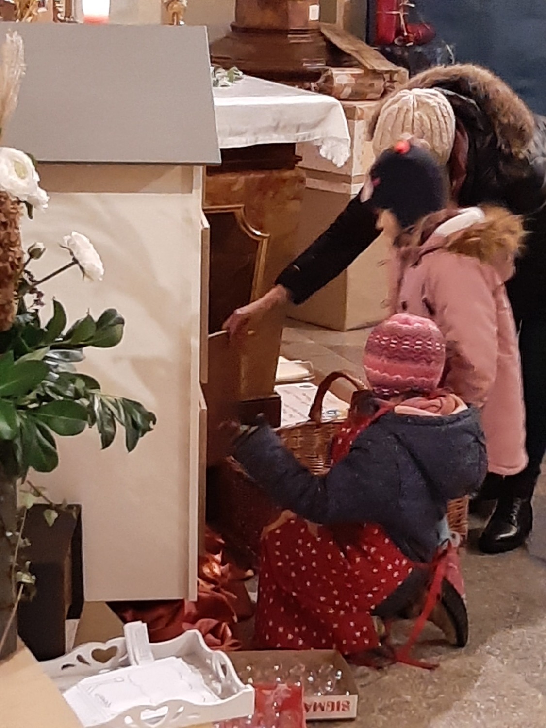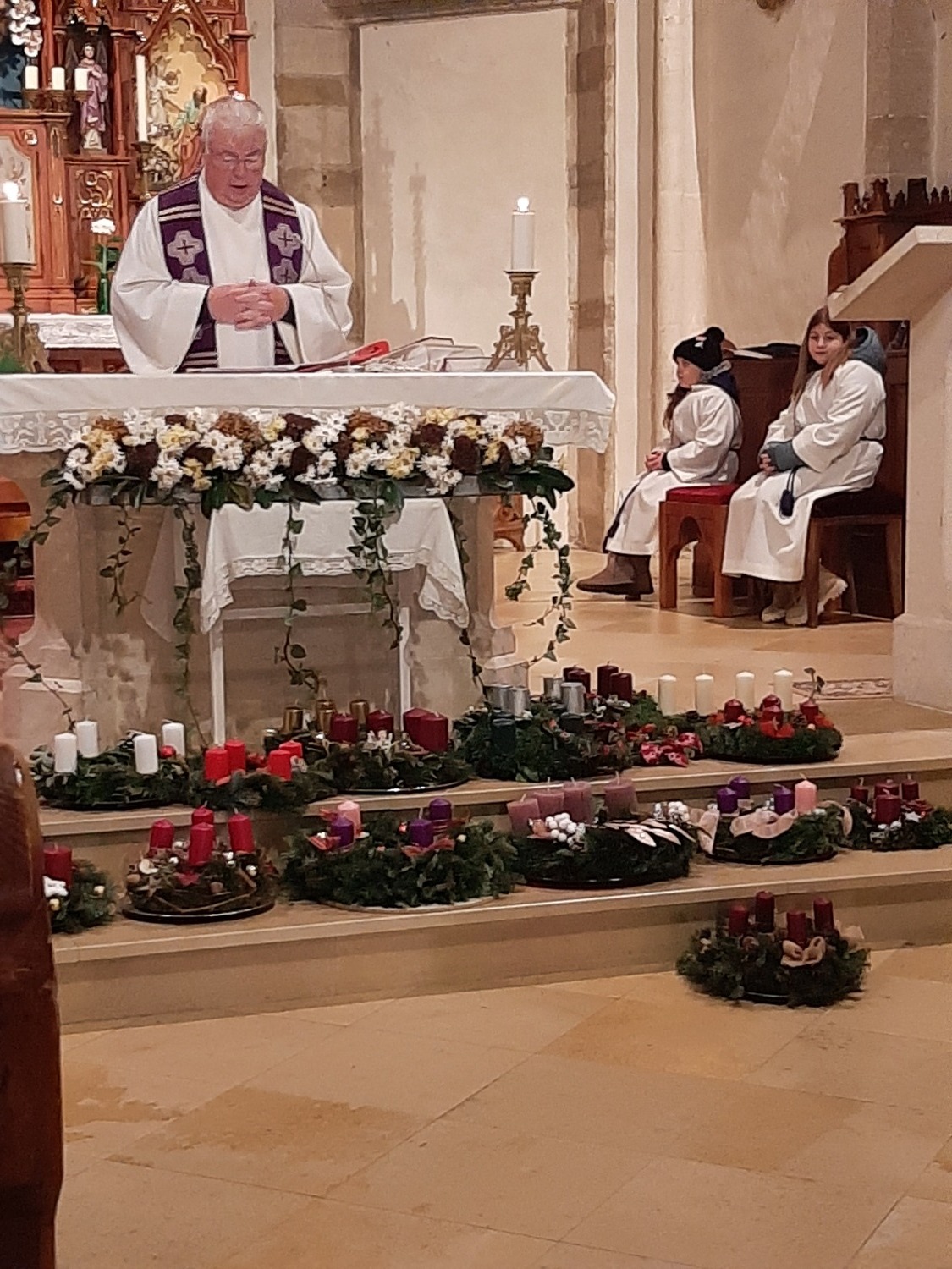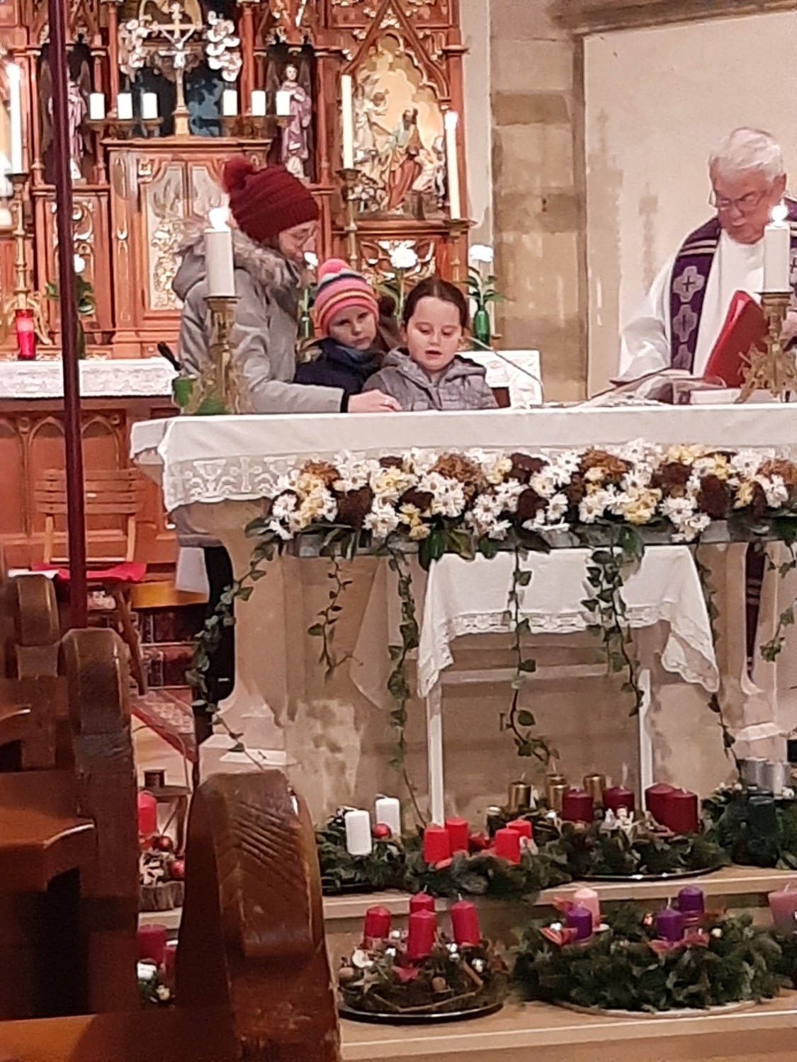 Am 02. Dezember feierte unser Hr. Pfarrer mit uns die Adventkranzsegnung. Der Kinderchor unter der Leitung des Kinderliturgieteams gestaltete diese mit. Laura und Sarah stimmten uns mit Adventliedern auf die besinnliche Zeit ein. Die Kinder führten einen Laternentanz auf, und ausserdem wurde das erste Türchen unseres Adventhäuschen geöffnet. Jeden Sonntag werden wir ein weiteres Türchen öffnen. Wir freuen uns auf euch, wenn ihr beim Öffnen dabei seid.