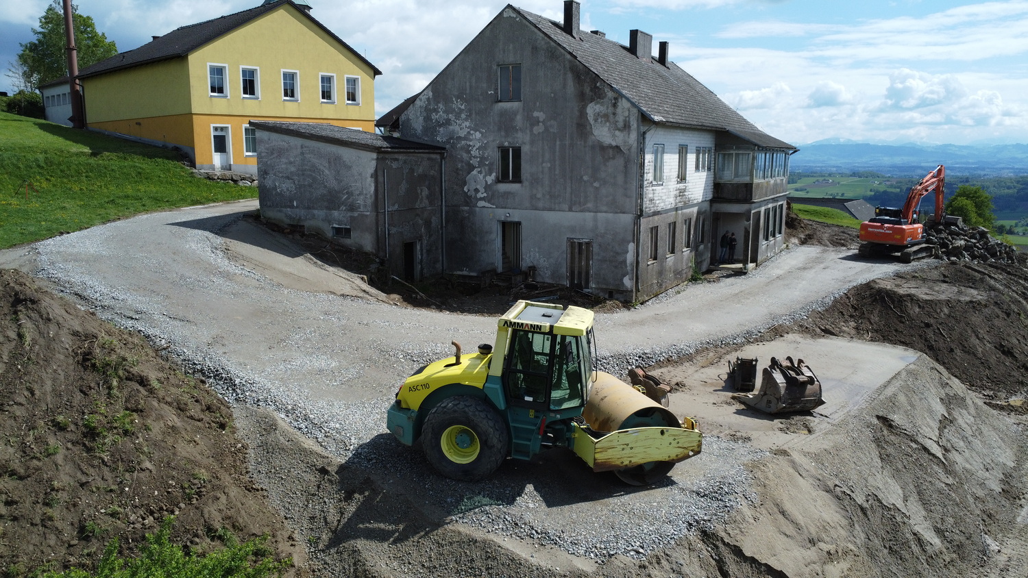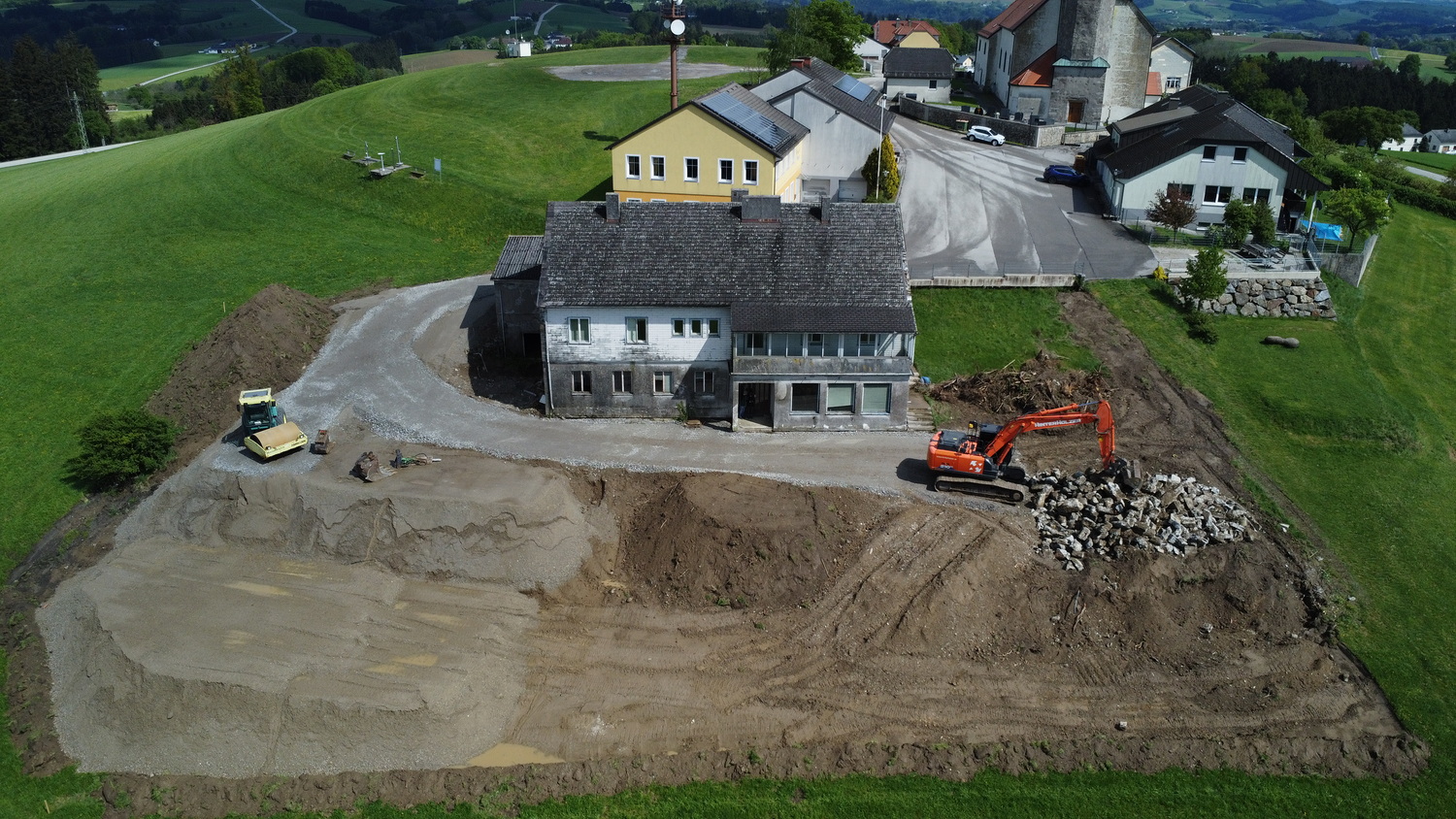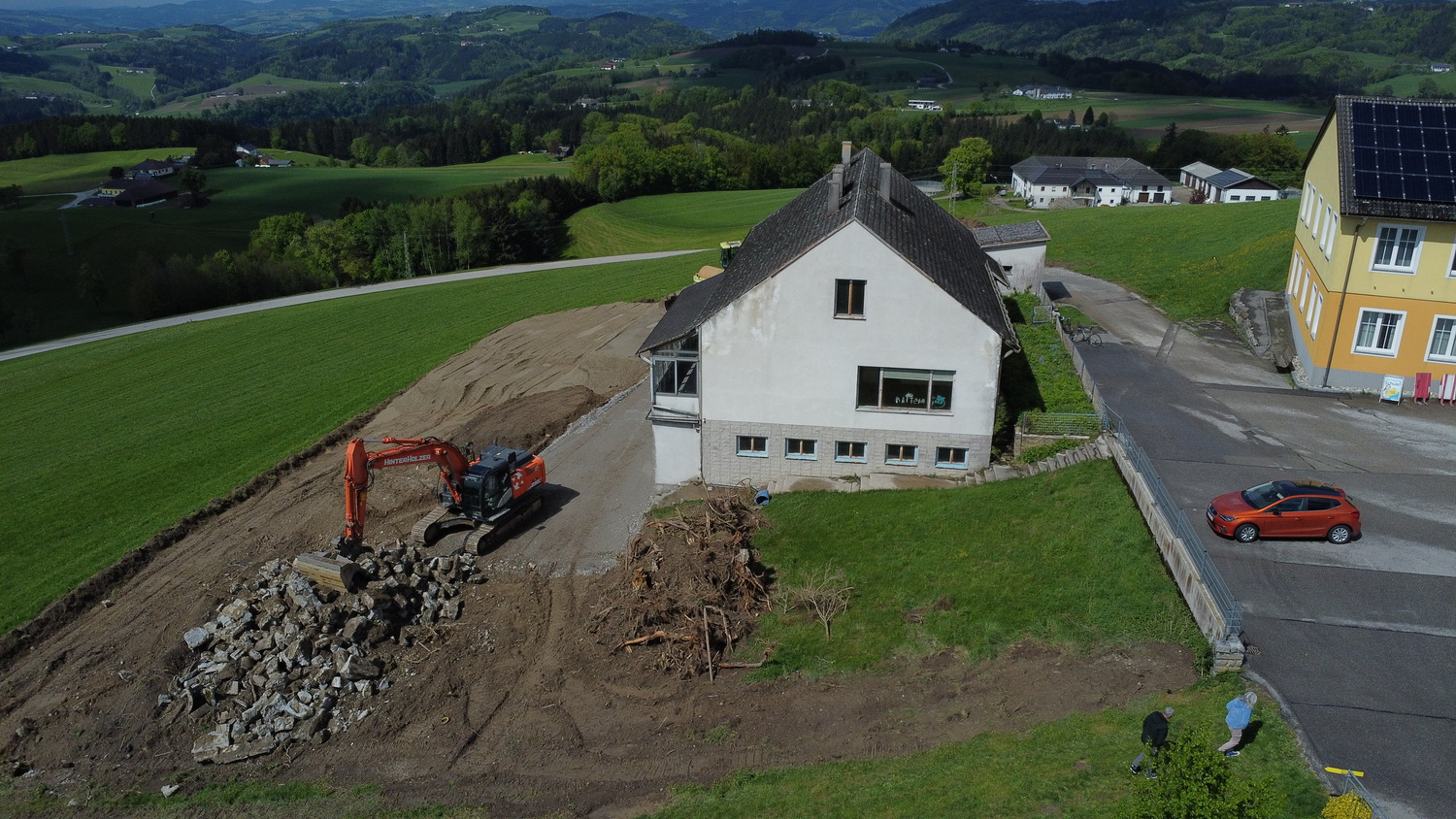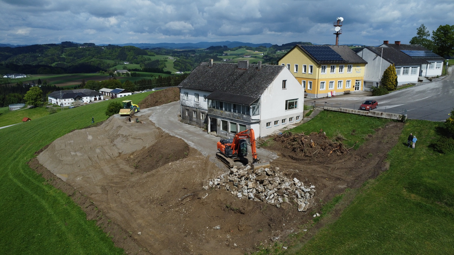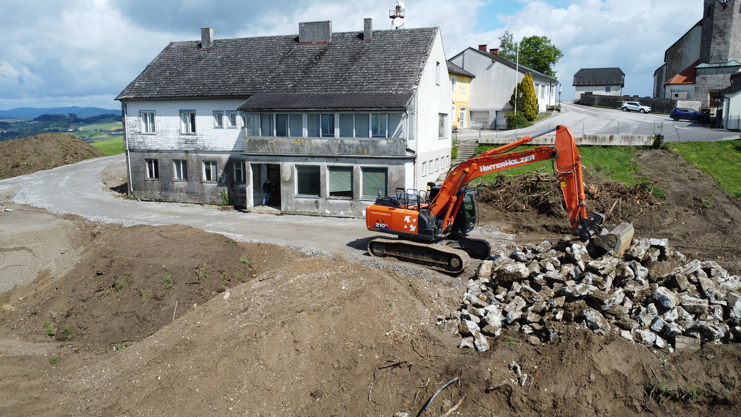 Die Gemeinde startete im April mit der Außengestaltung. Diese ist notwendig, damit wir aus dem unteren Bereich den Schutt und die Abgrabungen - die wir vorhaben, auch abtransportieren zu können. Die Firma Hinterholzer leistete da großartige Arbeit.