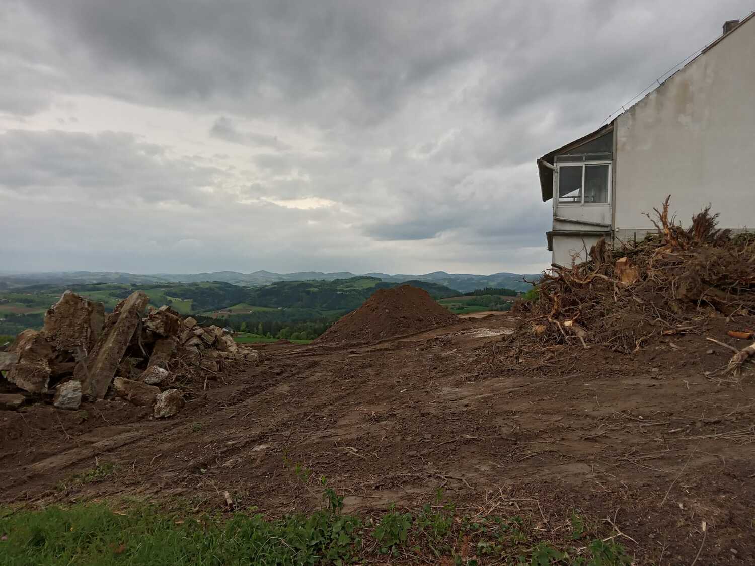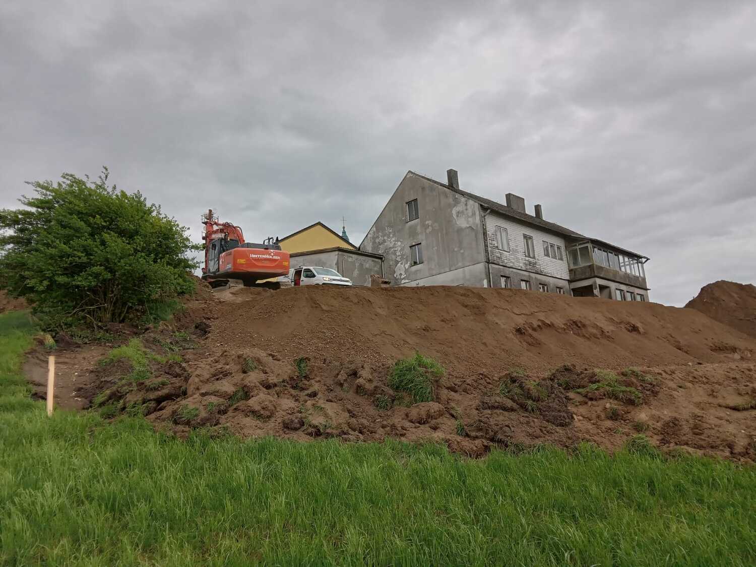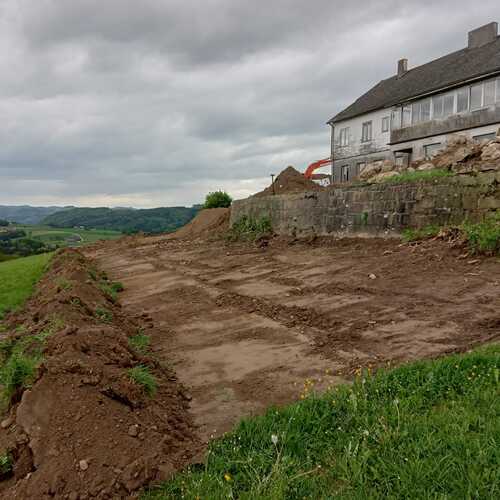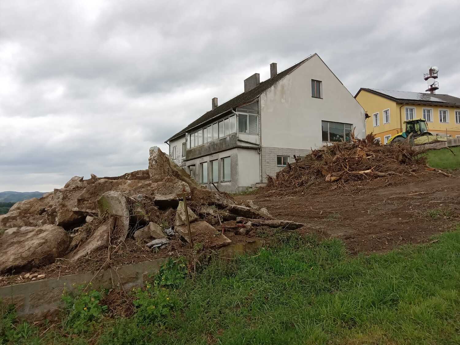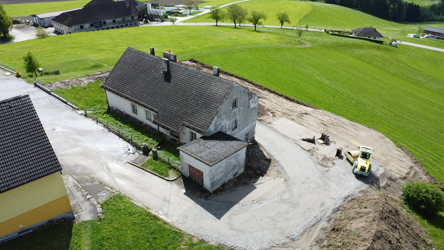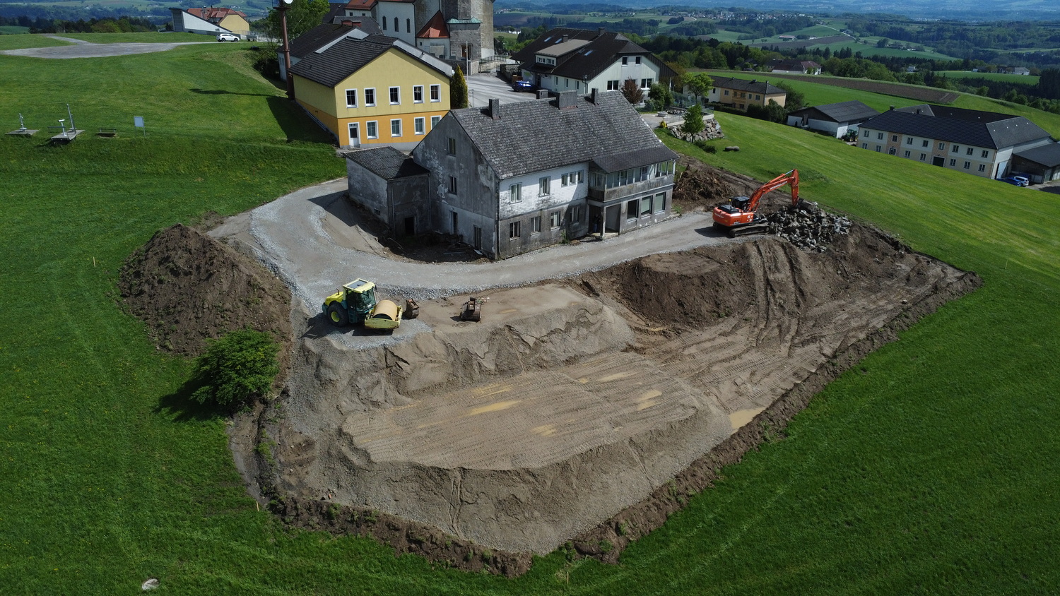 Die Gemeinde startete im April mit der Außengestaltung. Diese ist notwendig, damit wir aus dem unteren Bereich den Schutt und die Abgrabungen - die wir vorhaben, auch abtransportieren zu können. Die Firma Hinterholzer leistete da großartige Arbeit.