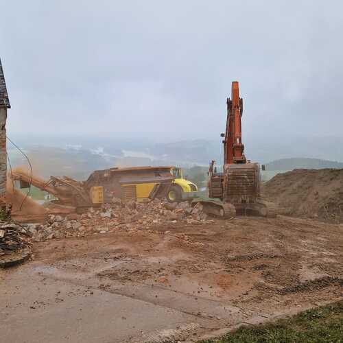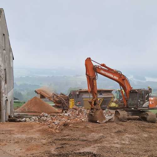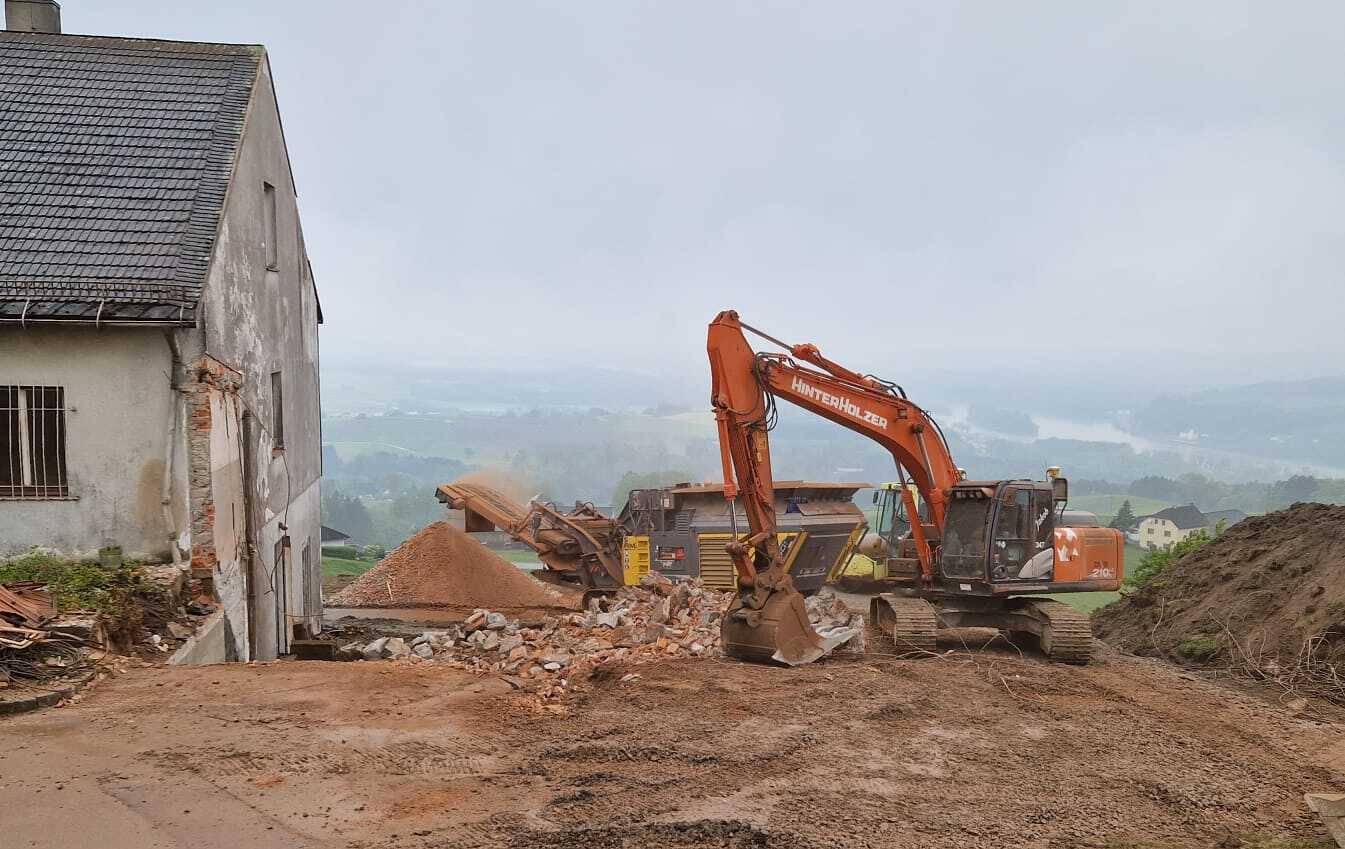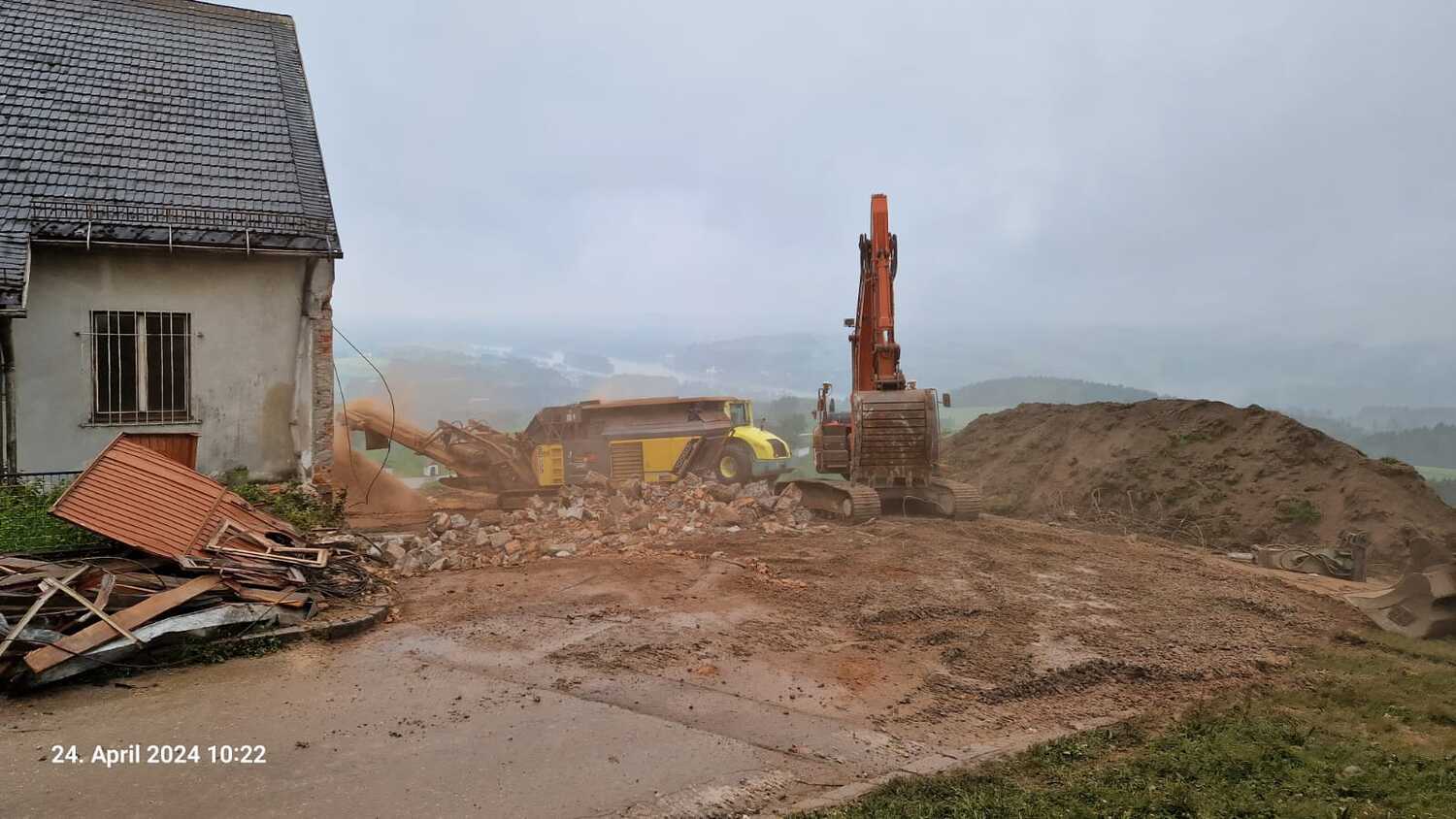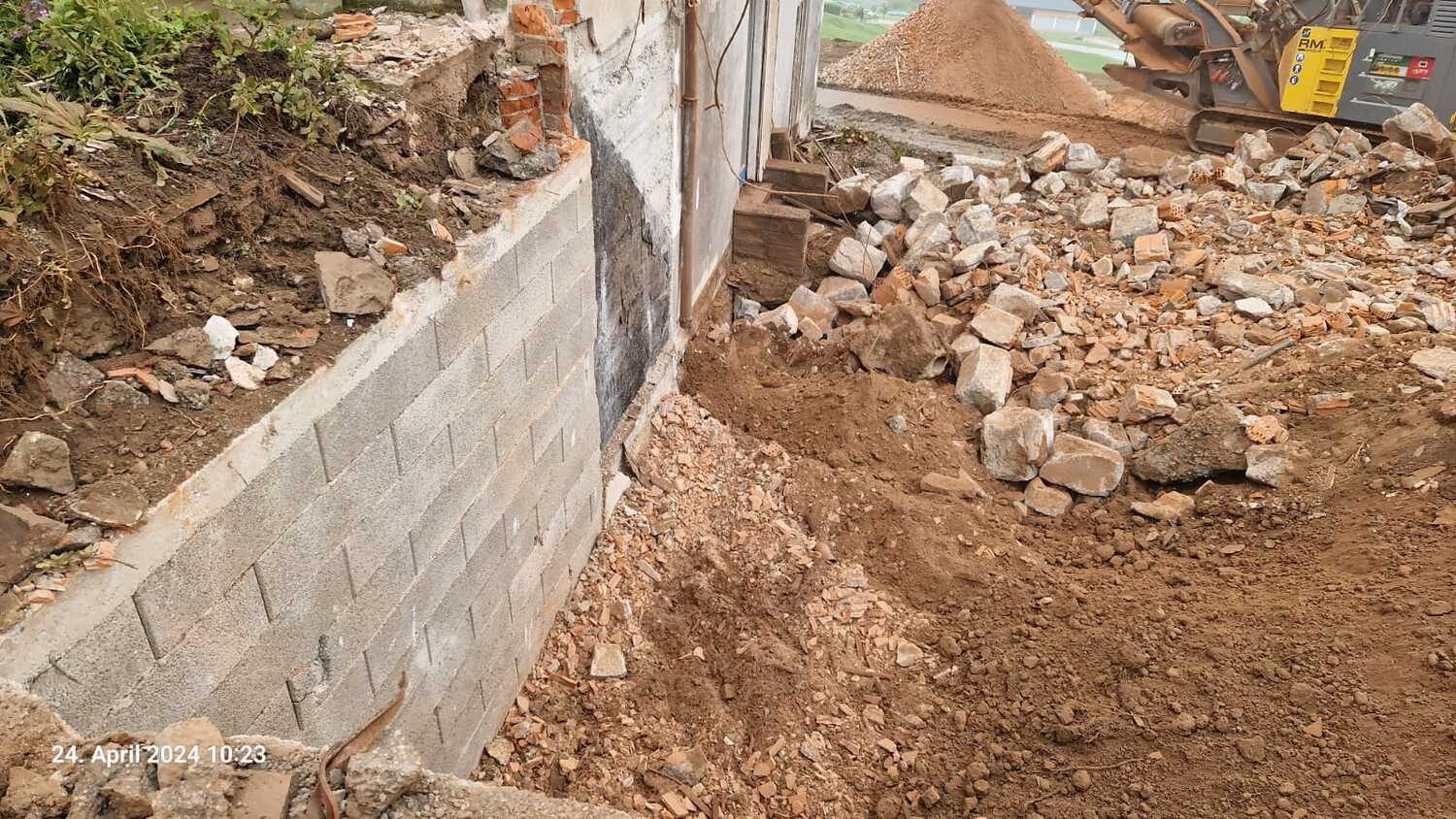 Um eine Abfahrt zu unseren Untergeschoß zu erhalten, musste am 24. April die Garage weichen. Auch hier wurde wieder mit großen Geschützen aufgefahren.