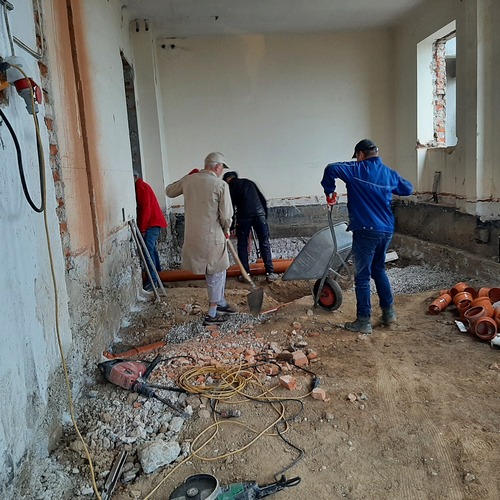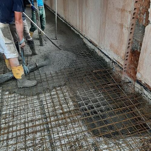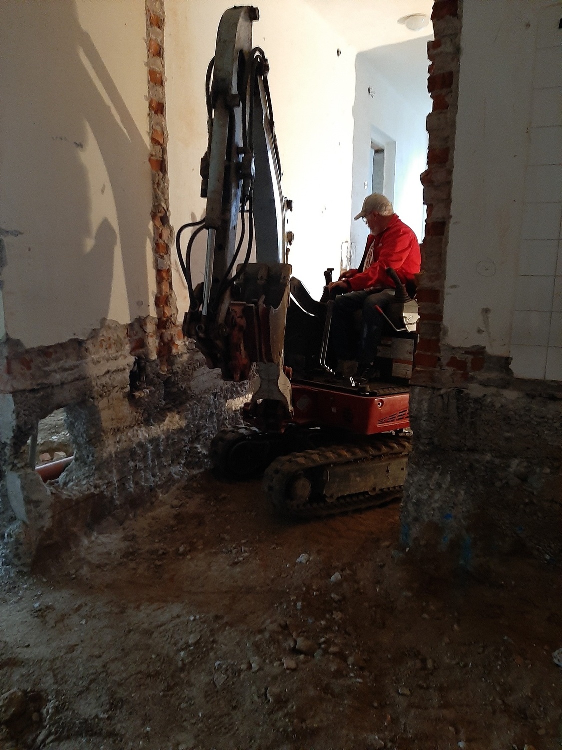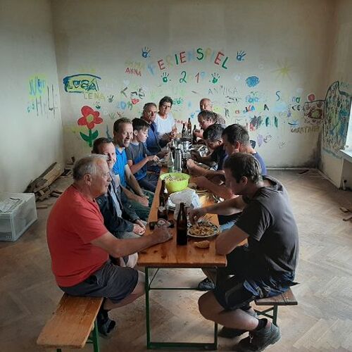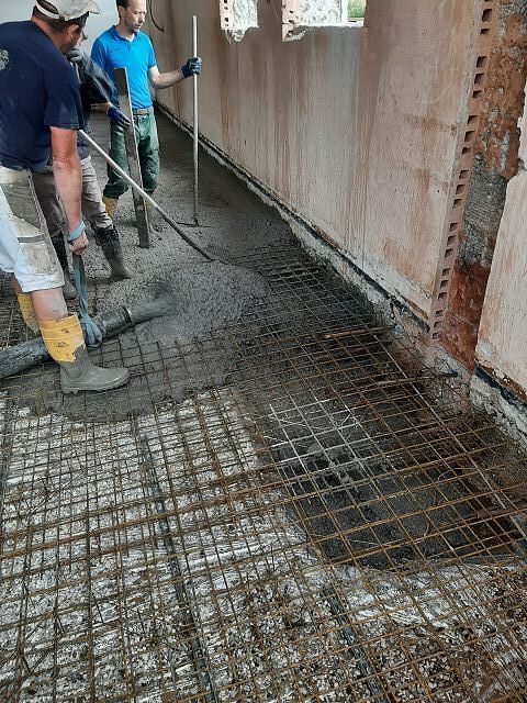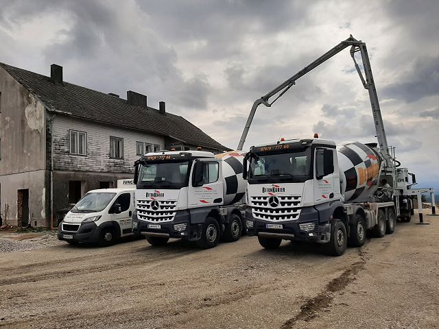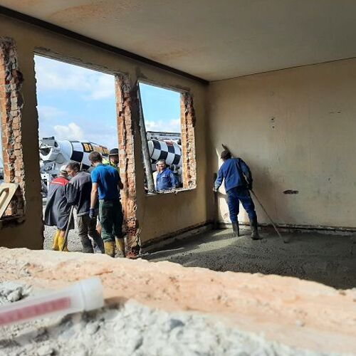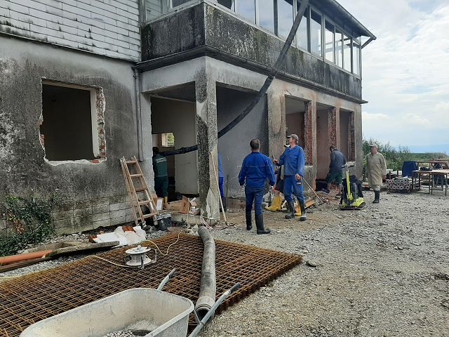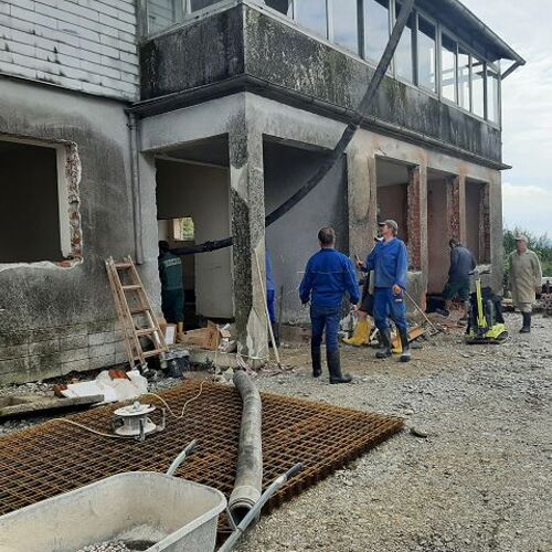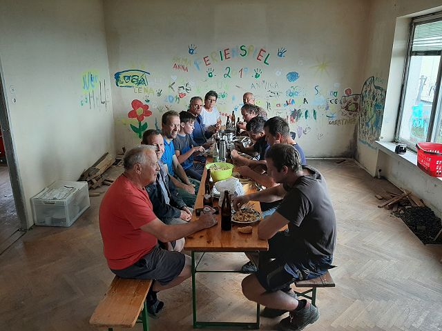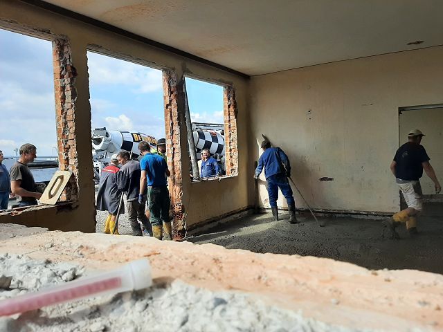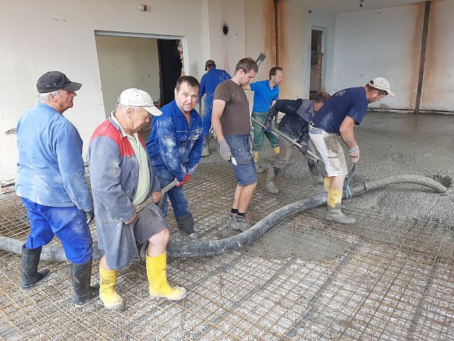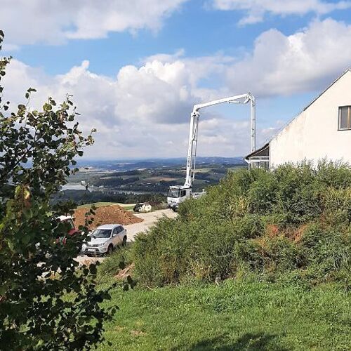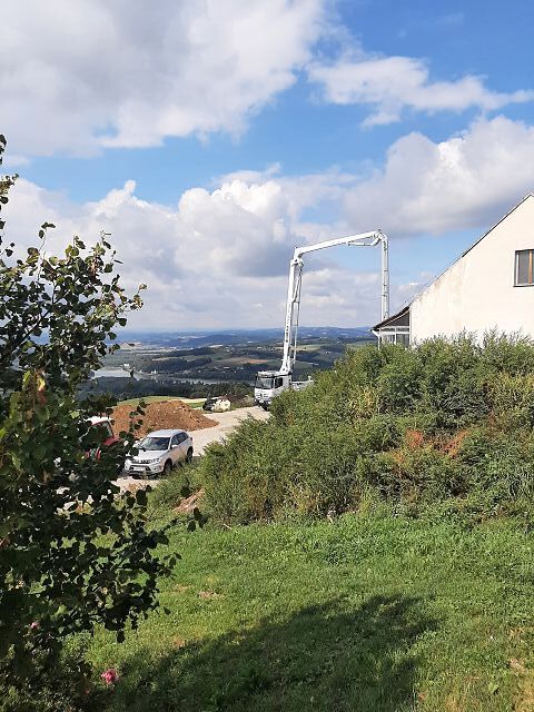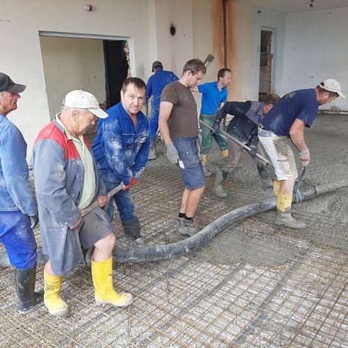 Am 09. + 10. September wurde alles vorbereitet, dass es uns am 10. September mittags möglich war, relativ spontan die Bodenplatte zu betonieren. Es ist uns geglückt, dass wir barrierefrei werden, und somit alles auf einer Ebene problemlos zu erreichen ist. Viele, viele Hände haben da spontan mitangepackt, dass nach knapp 3 Stunden die Pumpe wieder abfahren konnte. Herzlichen Dank für die etwas verschobene Mittagsmahlzeit an Vroni Sabitzer und danke an die vielen Helfer.
