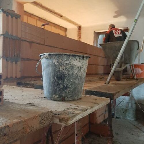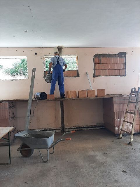 Vor dem Kirtag ist es uns mit großer Unterstützung aus der Bevölkerung gelungen, dass die Zwischenwände gemauert werden konnten. Wir wurden auch vor dem Kirtag fast fertig. Aber man sieht schon wo und wie die Räume angeordnet sind. Jetzt geht es erst einmal weiter mit dem Kirtag...dann gehört unsere Aufmerksamkeit wieder der Baustelle.