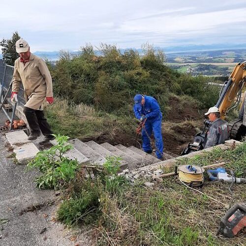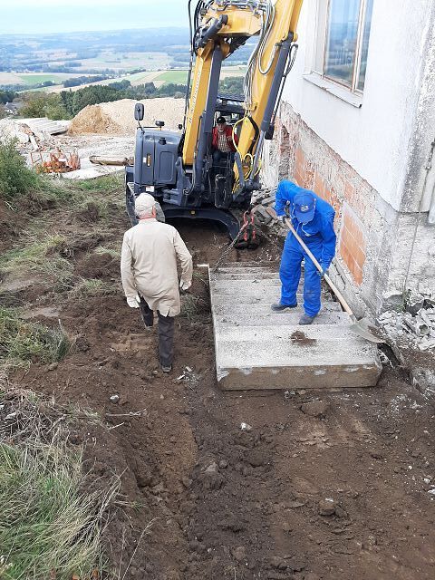 Nach dem Kirtag durften wir uns wieder voll und ganz unserer Baustelle widmen. Das Wetter spielte Gott sei Dank mit, dass es uns möglich war, einen Großteil der Grabungsarbeiten zu erledigen. Mit zwei Baggern wurde zeitgleich gearbeitet. Hermann Leitner und Affengruber Sepp bewiesen da wirklich Fingerspitzengefühl. Die Betonstiege links vom Haus runter wurde vorsichtig abgetragen, diese findet zu einen späteren Zeitpunkt an anderer Stelle wieder Verwendung. Dankeschön an die vielen, vielen Helfer, die uns da wieder tatkräftig unterstützt haben.
