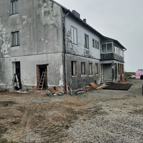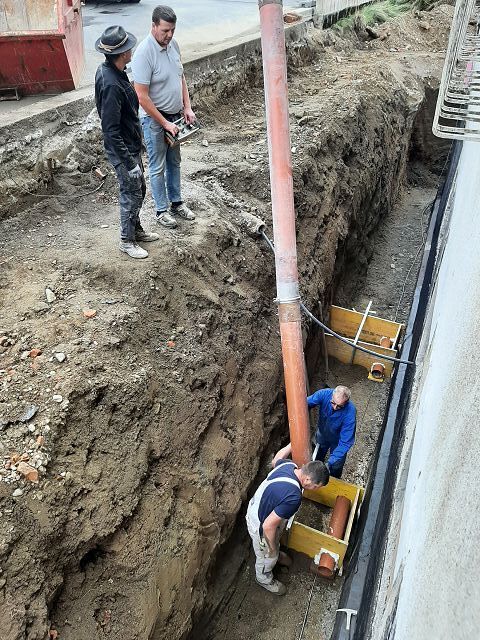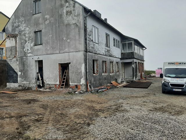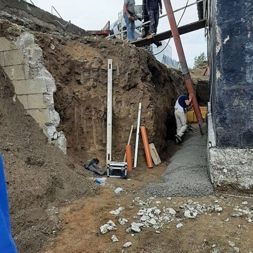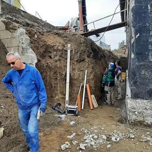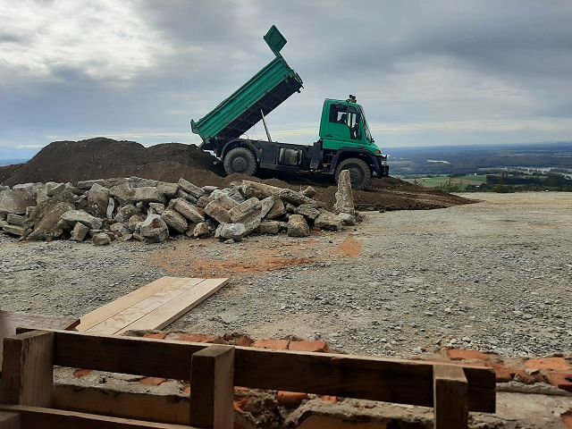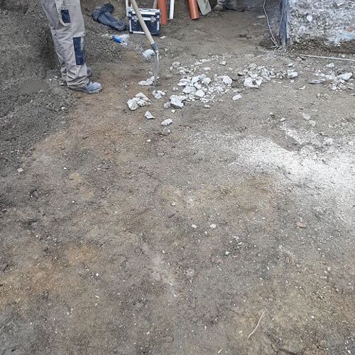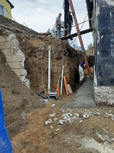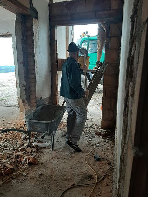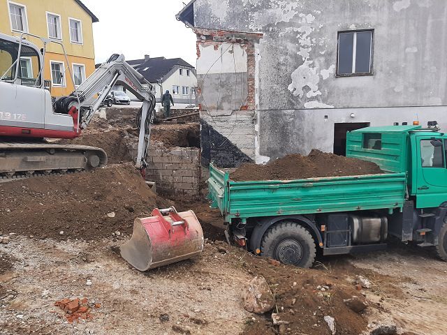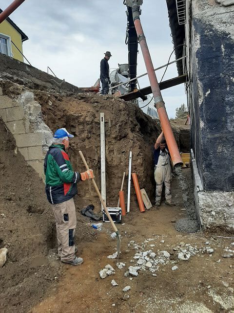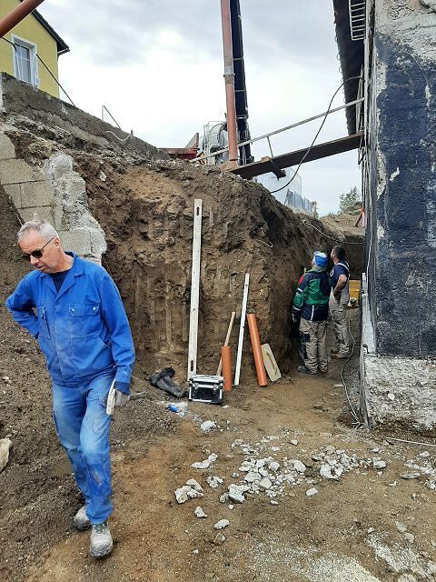 Anfang Oktober ging es weiter mit den Ausgrabungen, dass wir rundherum abdichten und isolieren können. Ein Betonwall wurde entlang der Hausmauer aufgeschüttet, die Garage nimmt bereits Formen an, und drinnen gelang es uns pfarrlicher Seite, die Maurerarbeiten im Großen und Ganzen abzuschließen.