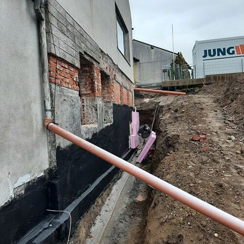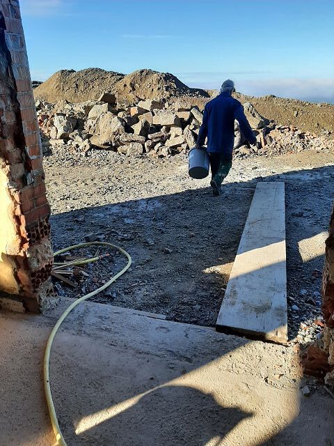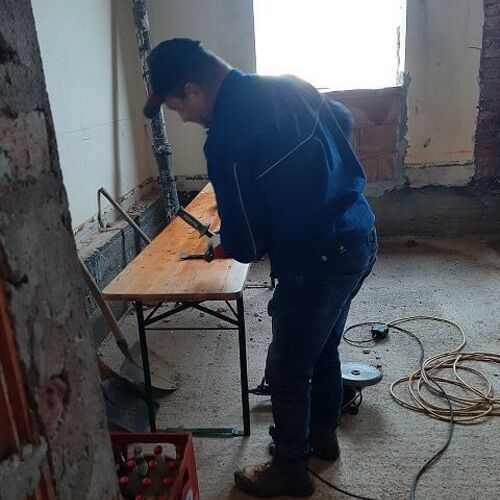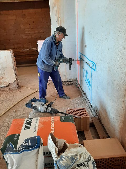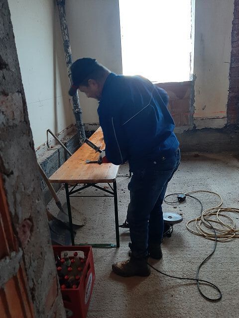 Von 07. - 09. Oktober ging es mit frischen Mutes wieder weiter. Drei Tage wurde gestemmt und gebohrt, sodass die Leitungen verlegt werden konnten. Ebenso wurde draussen bereits abgedichtet und isoliert. Danke wieder an die tollen Helfer und die Köche.