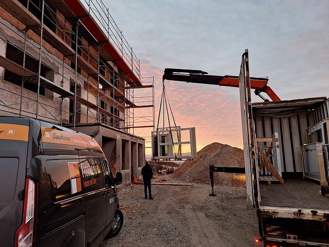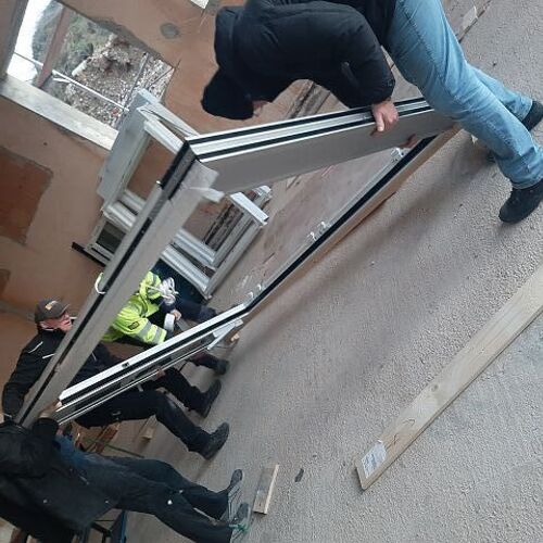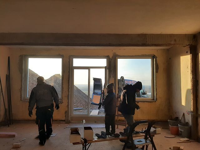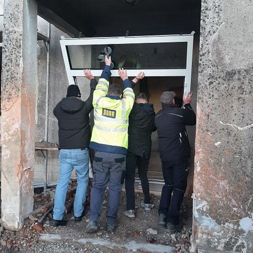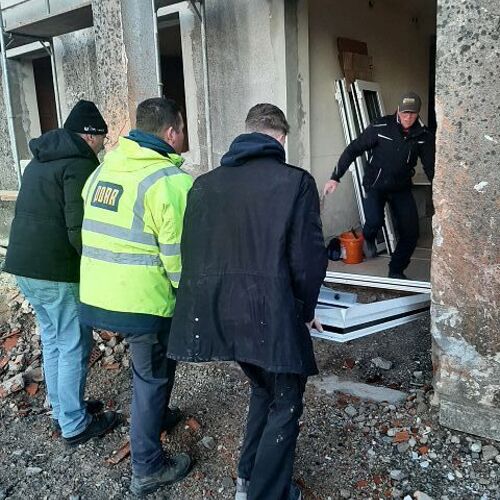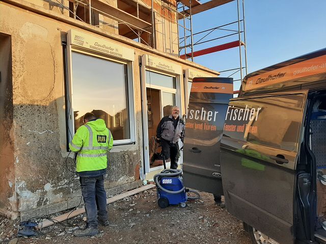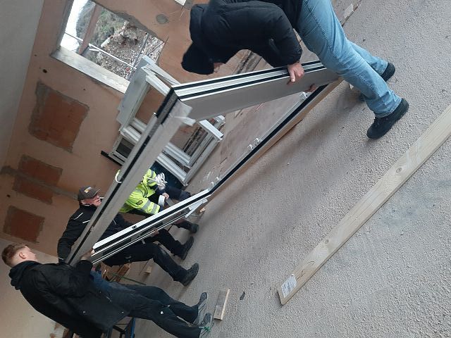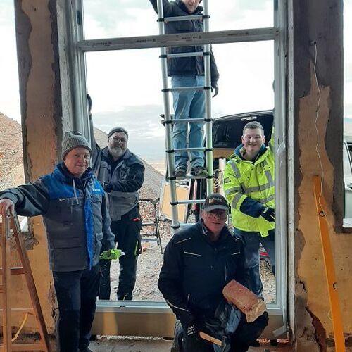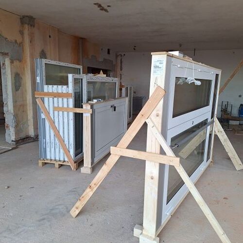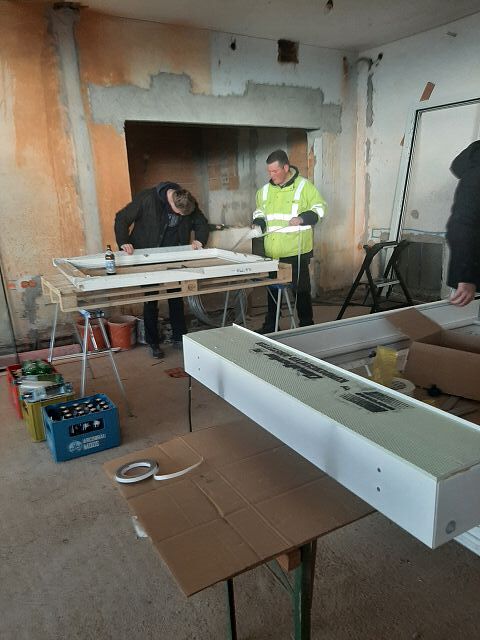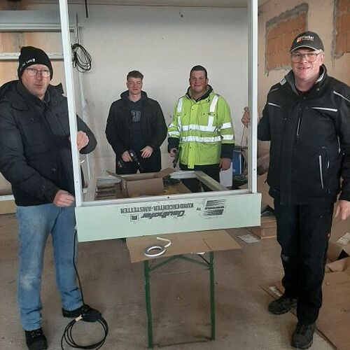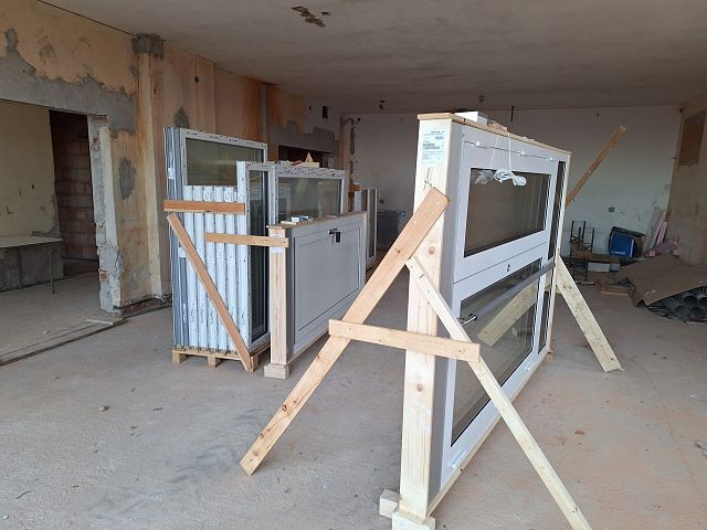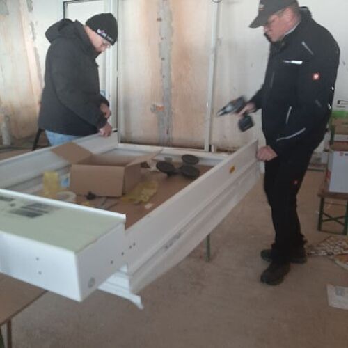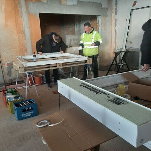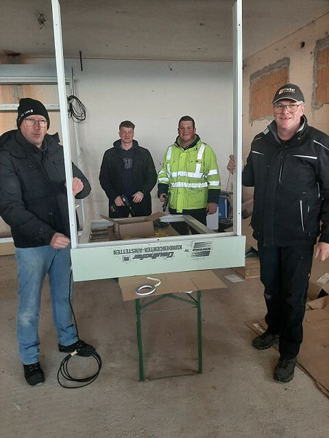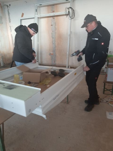 Andreas Fischer baute im pfarrlichen Bereich die Fenster mit tatkräftiger Unterstützung des Musikvereins aus Kollmitzberg ein. An einem Wochenende ging dieses Vorhaben reibungslos und flott über die Bühne. Soweit sind wir in unserem Bereich "zu".