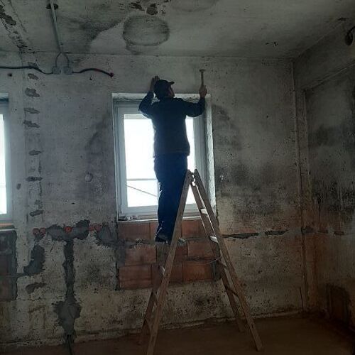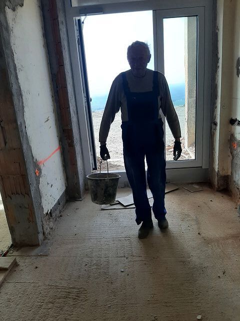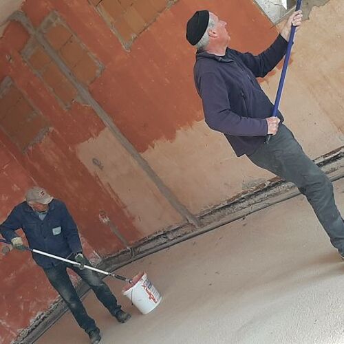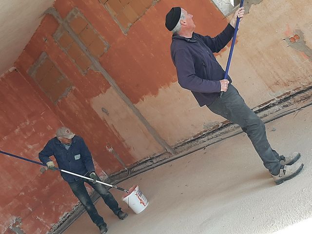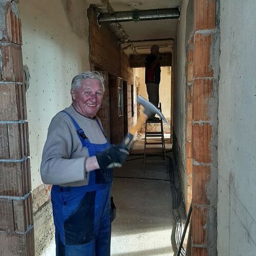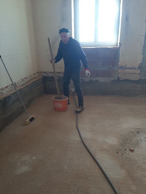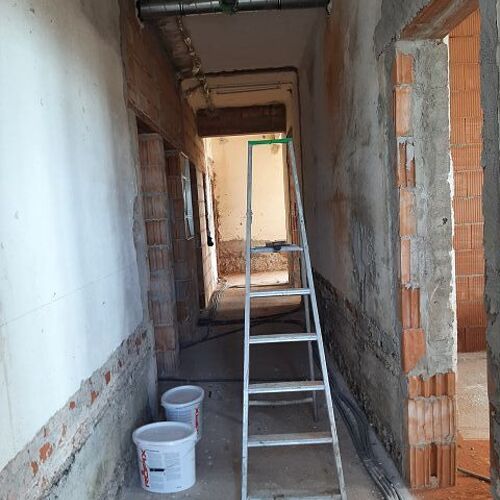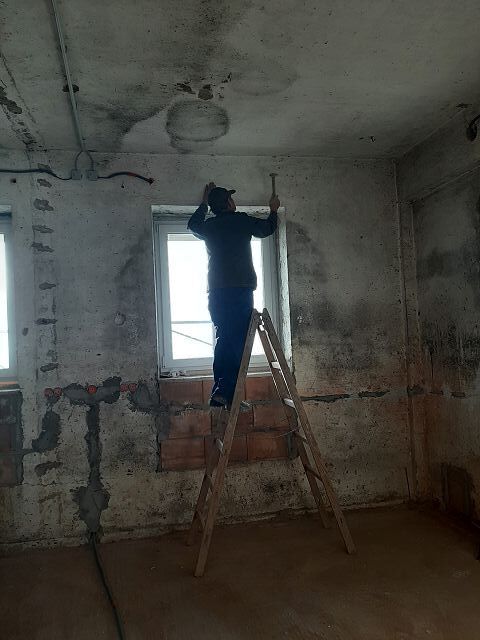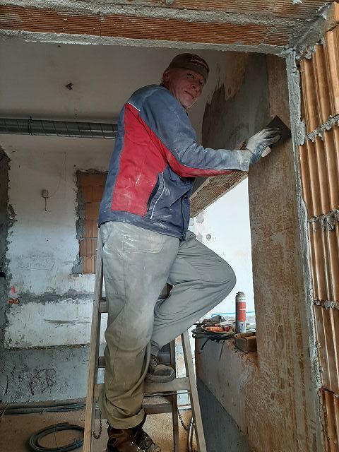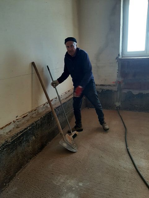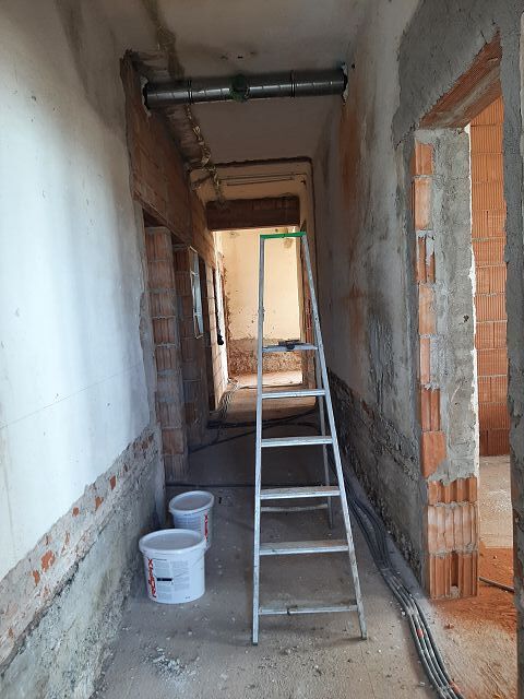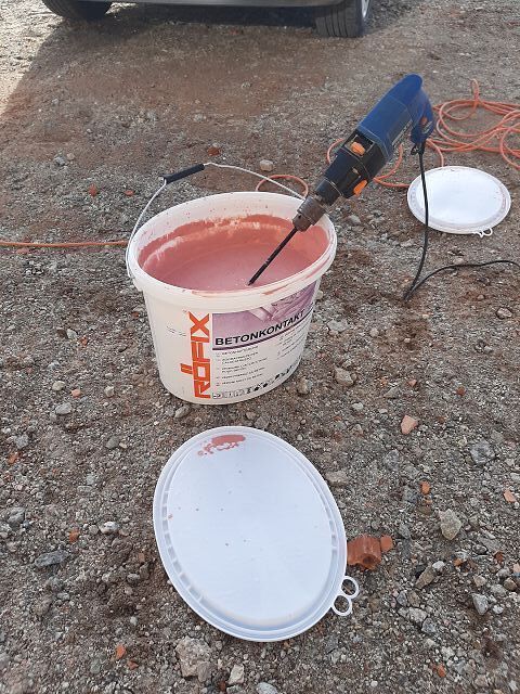 Da wir uns in Riesenschritten dem Innenputz nähern, galt unser Hauptaugenmerk der Vorbereitung. Wir räumten alles aus, erneuerten an ein paar kleinen Stellen den Putz und bereiteten alles mit einem Haftanstrich vor, dasss der Innenputz dann sicher haftet und hält.