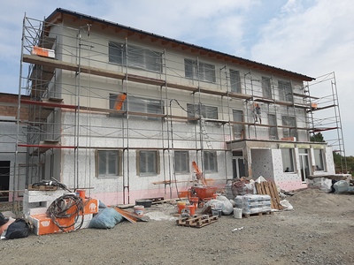 Die Malerarbeiten und der Fliesenleger konnten die Arbeiten beenden. Die Fassade ist soweit fertig. Jetzt geht es an die Inneneinrichtung und an die Türen. Wir freuen uns schon sehr, wenn wir zu Erntedank bereits die Türen öffnen dürfen.