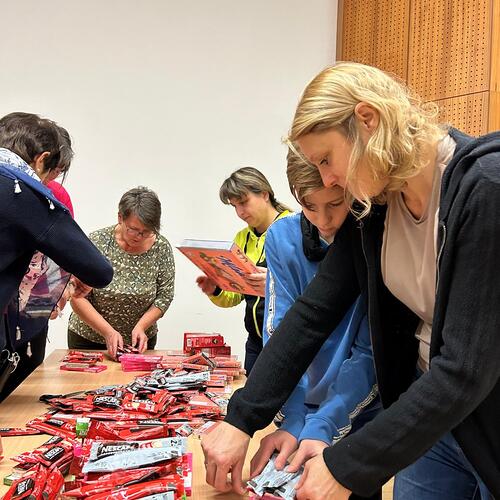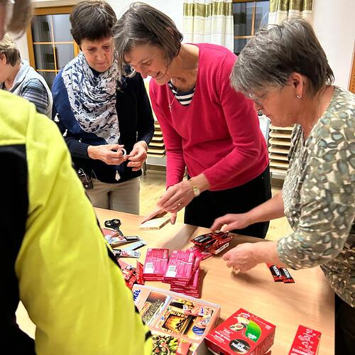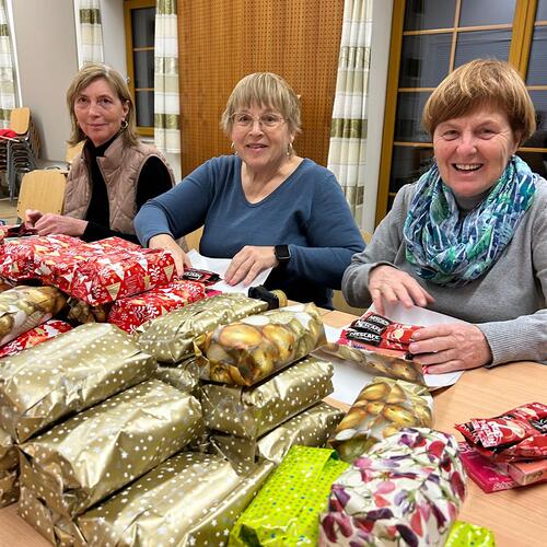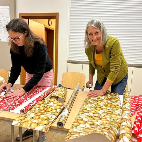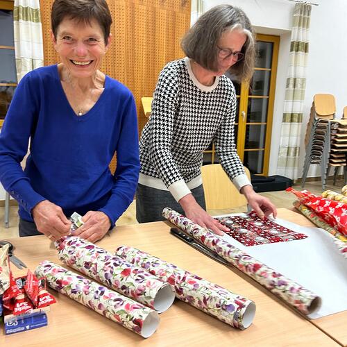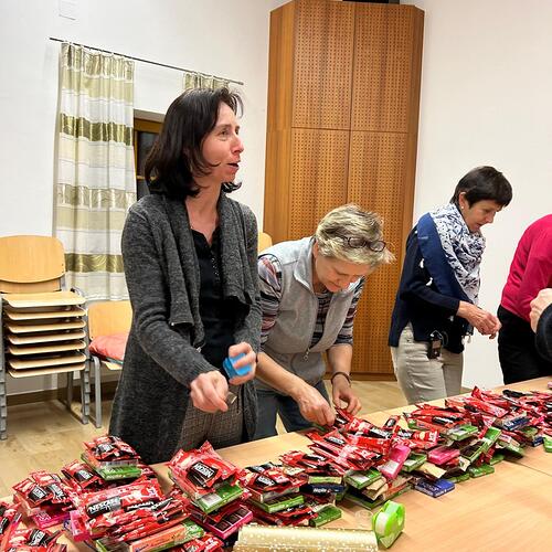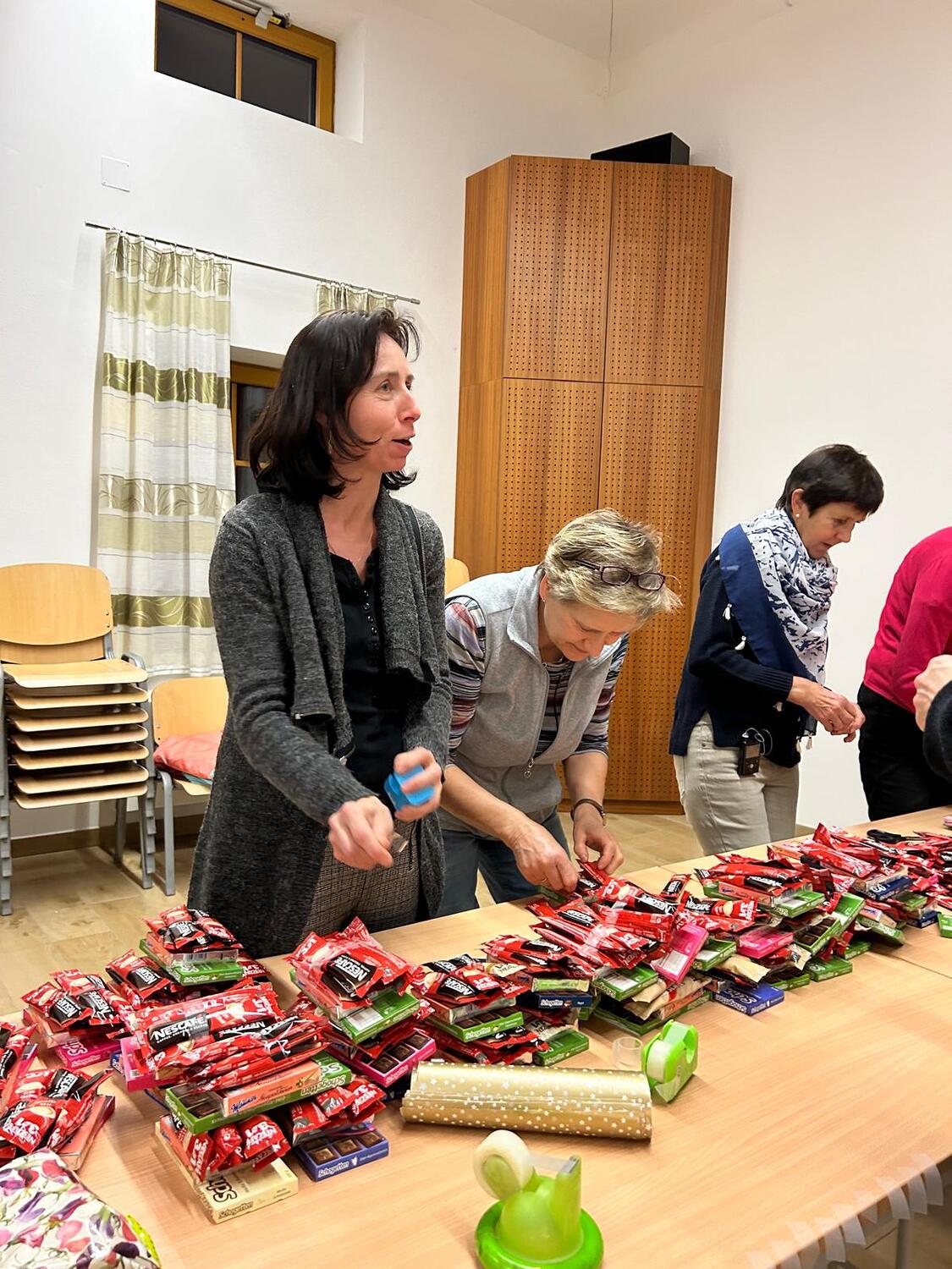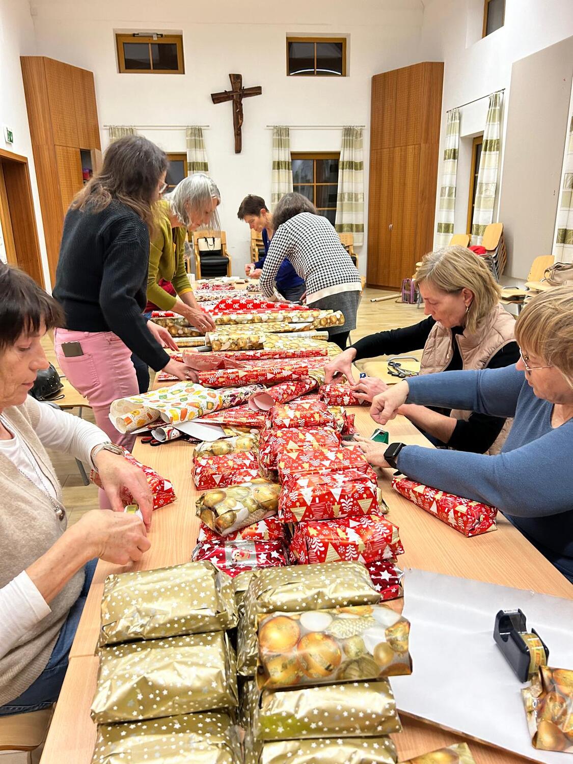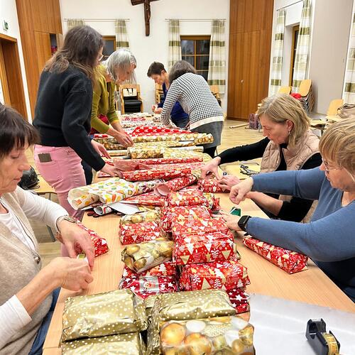 Ganz eifrig wurden gestern im Pfarrheim von Stephanshart die Weihnachtspackerl - für Menschen, die aus den unterschiedlichsten Gründen an Weihnachten nicht bei ihren Familien sein können oder keine haben - verpackt.