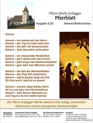 Pfarrblatt Advent-Weihnachten 2023 Ardagger Markt